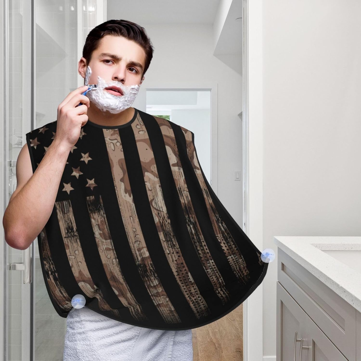 American Flag Beard Bib Apron, Beard Hair Catcher For Men Shaving, Waterproof With Suction Cups