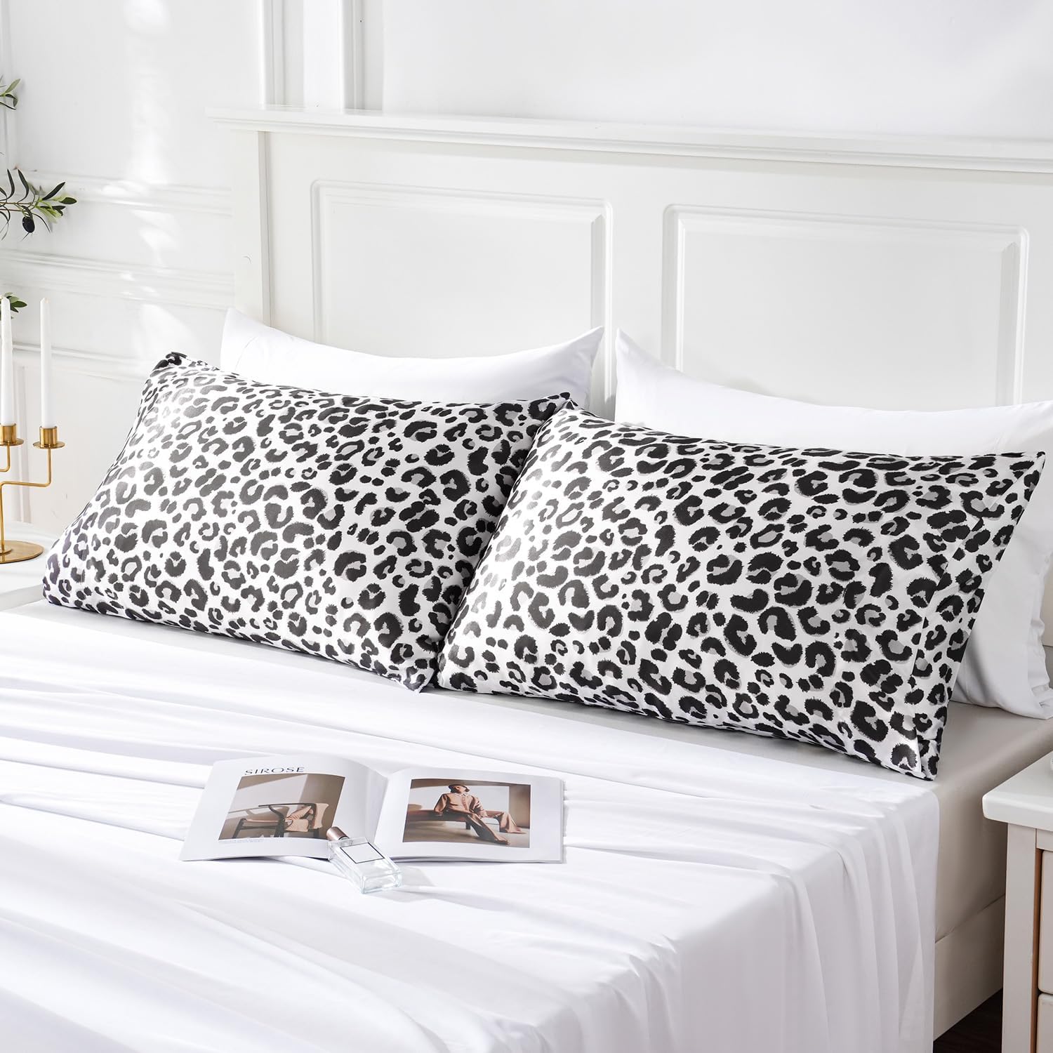 MR&HM Satin Pillowcase for Hair and Skin, Silk Satin Pillowcase 2 Pack, Queen Size Pillow Cases Set of 2, Silky Pillow Cover with Envelope Closure (20x30, White Leopard)