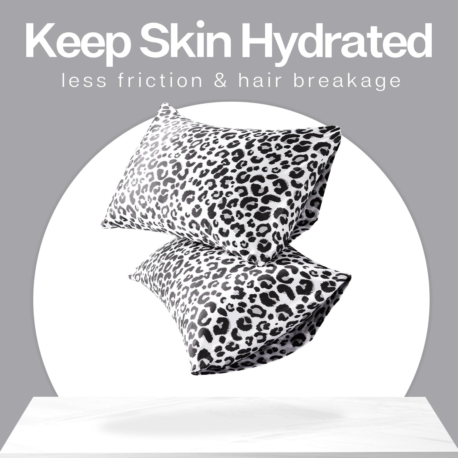 MR&HM Satin Pillowcase for Hair and Skin, Silk Satin Pillowcase 2 Pack, Standard Size Pillow Cases Set of 2, Silky Pillow Cover with Envelope Closure (20x26, White Leopard)