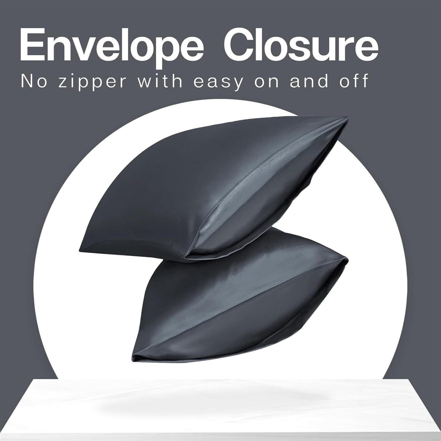 MR&HM Satin Pillowcase for Hair and Skin, Silk Satin Pillowcase 2 Pack, King Size Pillow Cases Set of 2, Silky Pillow Cover with Envelope Closure (20x36, Space Grey)