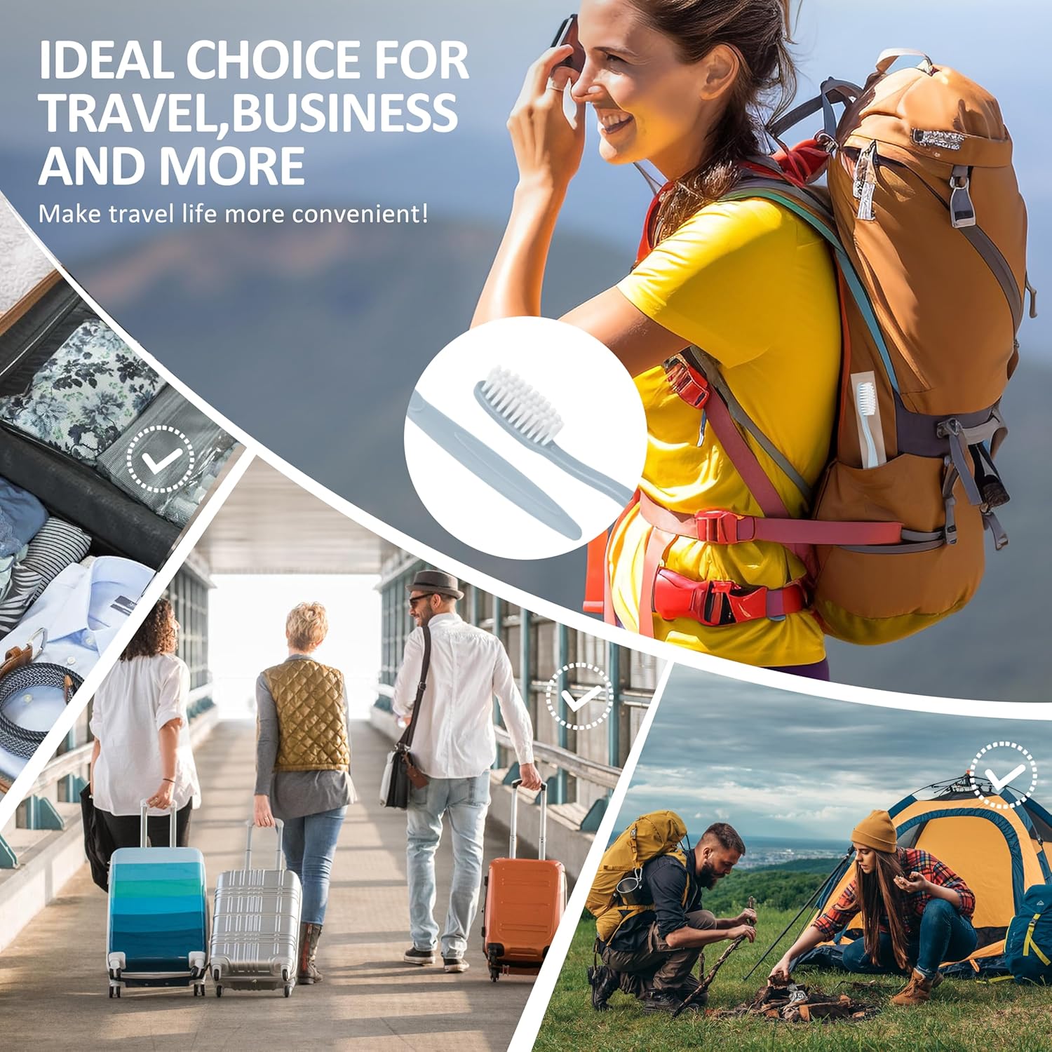 - TRAVEL & COMMERCIAL MULTI-USE: Perfect portable toothbrush set for camping, flights, offices, and dental clinics. Cost-effective bulk purchase for schools, homeless shelters, and event giveaways. Multipack storage-friendly design.