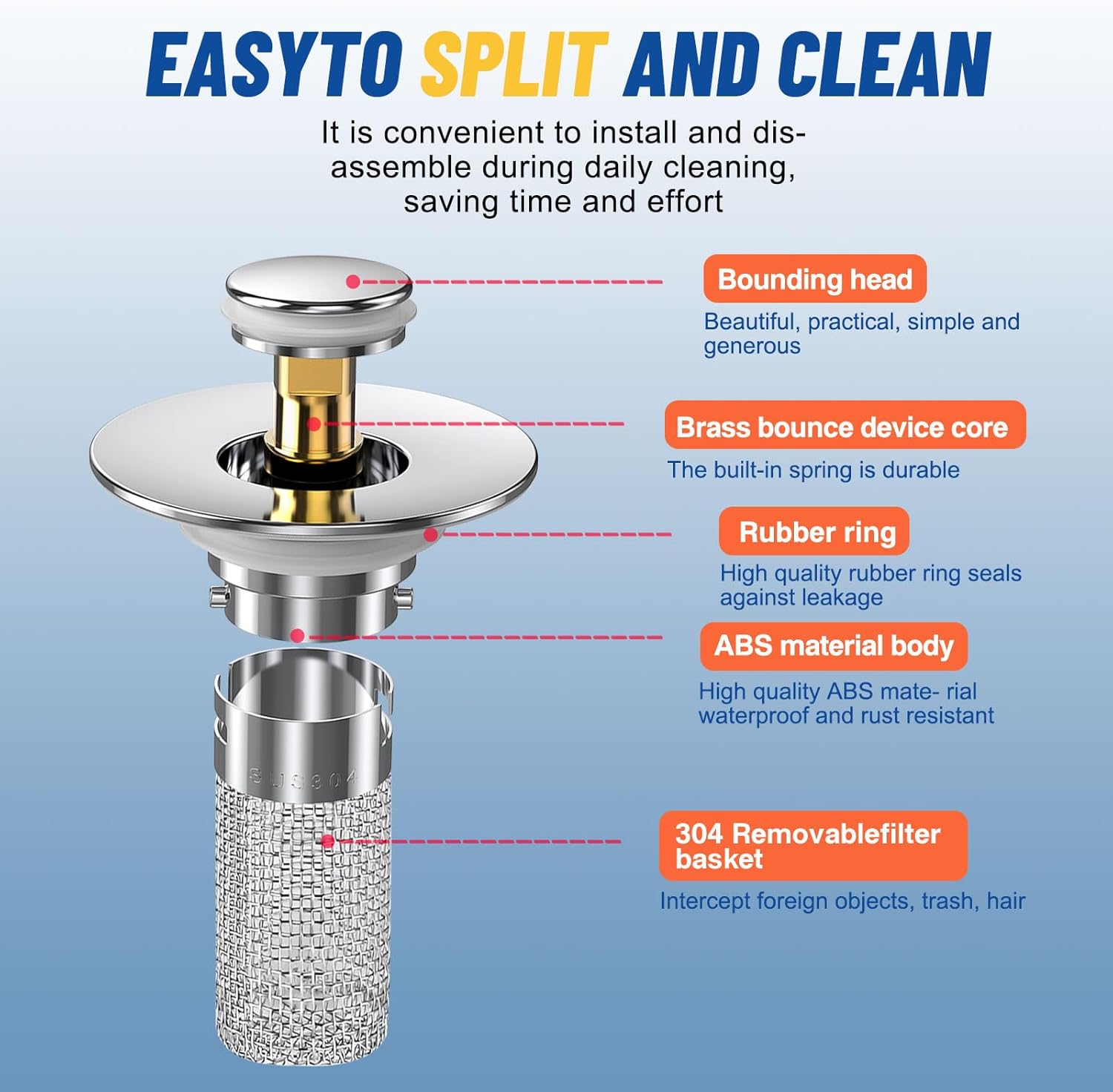 2Pcs Bathroom Sink Stopper Hair Catcher, Pop Up Sink Drain Filter with Removable Stainless Steel Filter Basket Hair Catcher, for US Bathroom Sink Stopper Replacement (2PCS)