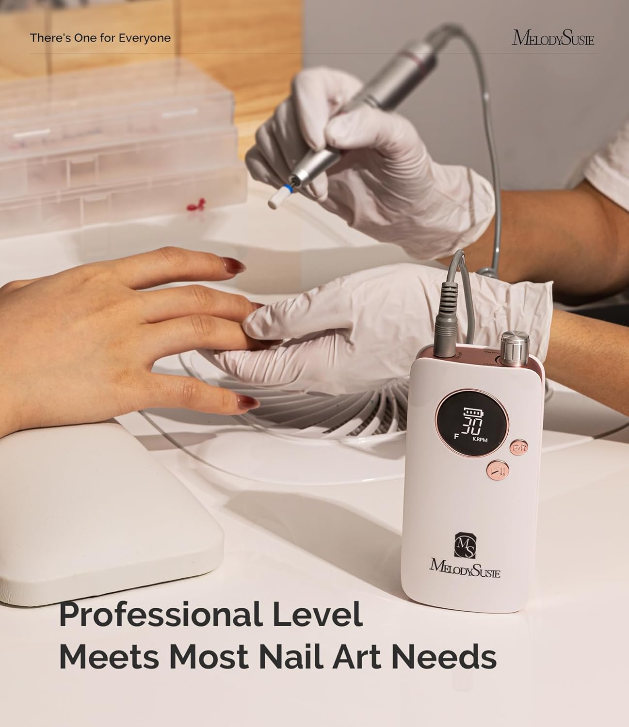 MelodySusie Portable Nail Drill 30000 RPM,SC320F Professional Rechargeable Electric Nail File,Cordless Nail E File for Acrylic Nails Gel Polishing Removing,Efile Nail Kit for Manicure Salon Home,Rose