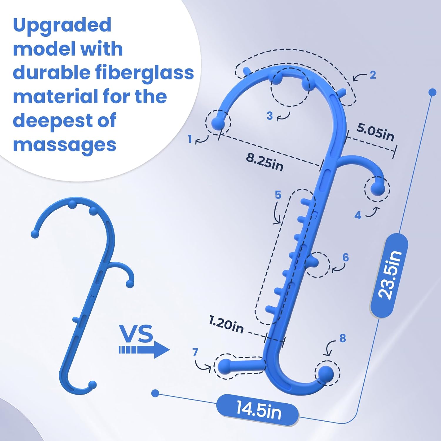 - Trigger Point Massage Tool for Pain Relief – Our massage hook puts a full body massage in the palm of your hands. Its unique two-sided cane design allows you to deep tissue massage all muscle groups in your body from head to toe, hitting pain-trigger points and relaxing tight, spasmodic, and knotted muscles. Controls massage pressure better than massage balls, reaches hard-to-reach areas massage guns can’t, and hits trigger points unlike yoga rollers