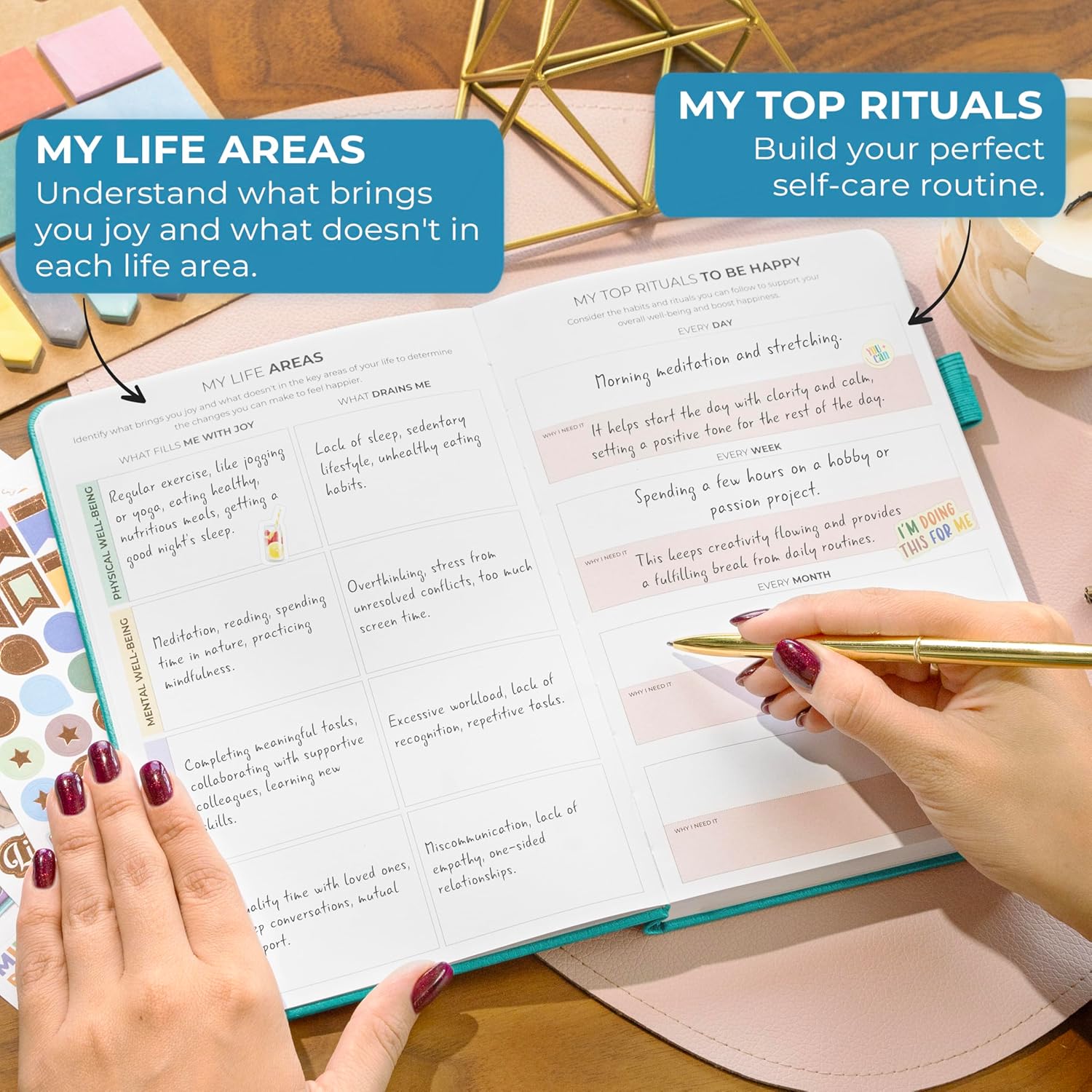 - PRACTICE DAILY GRATITUDE TO STAY POSITIVE – Begin each day by writing down three things you're grateful for in your daily positivity journal to recognize the good in your life and set a positive tone for the day ahead.