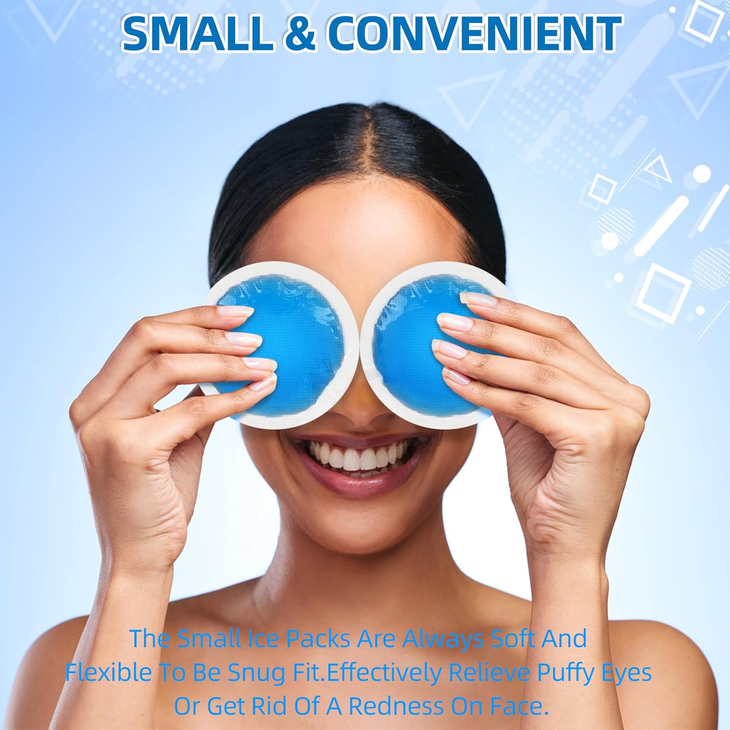 - SMALL & CONVENIENT: The small ice packs are always soft and flexible to be snug fit. 4 inch reusable round ice packs are perfect for tired eyes, breastfeeding, migraines, wisdom teeth surgery, injections, fever, allergies, beauty treatments, bumps, bruises and small wounds. Small ice packs won’t take much room in the freezer so you can leave them there to be ready whenever you need.