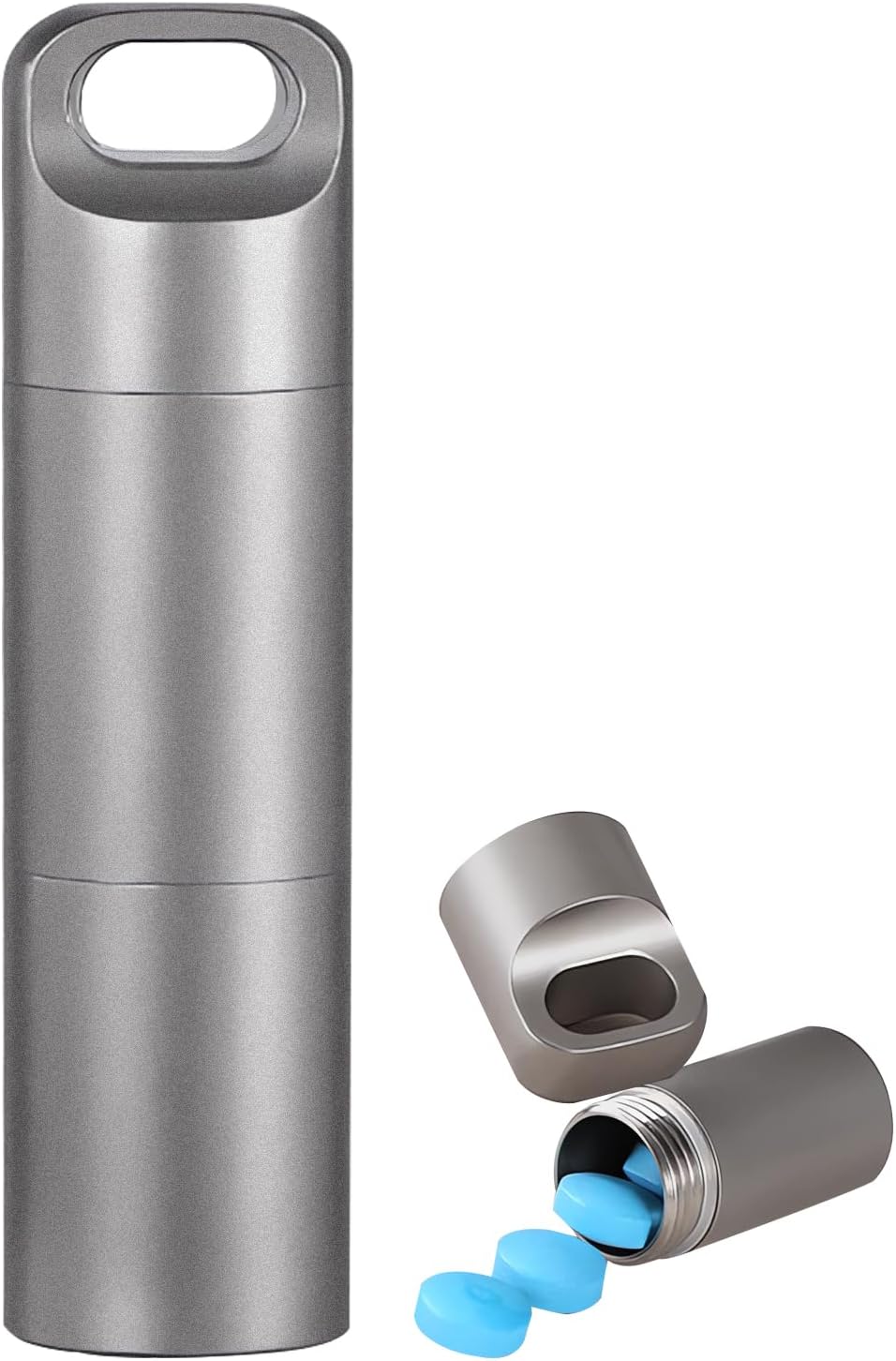 - 304 Stainless Steel Pill Container keychain --Instead of using cheap metal, our small Stainless Steel pill case is made with 304 Stainless Steel ; this small keychain pill holder Heavy duty sturdy. Say goodbye to flimsy plastic containers, no more unexpected crashes, and choose a safe, strong house for your pills.