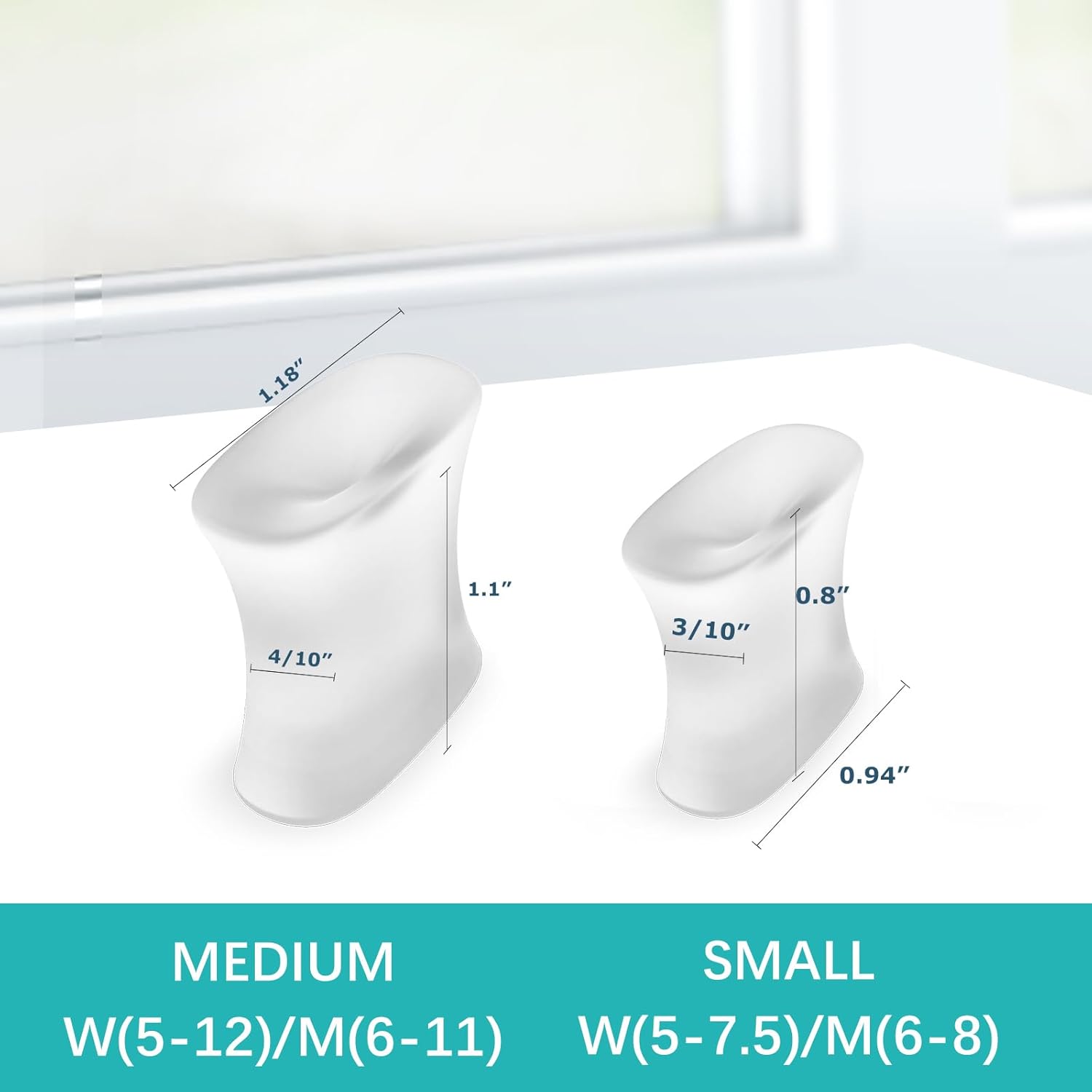 - What You Get: The complete 12-pack includes 6 pack of medium size silicone toe separators and 6 pack of small size toe straighteners that fit perfectly between your toes, without creating friction.