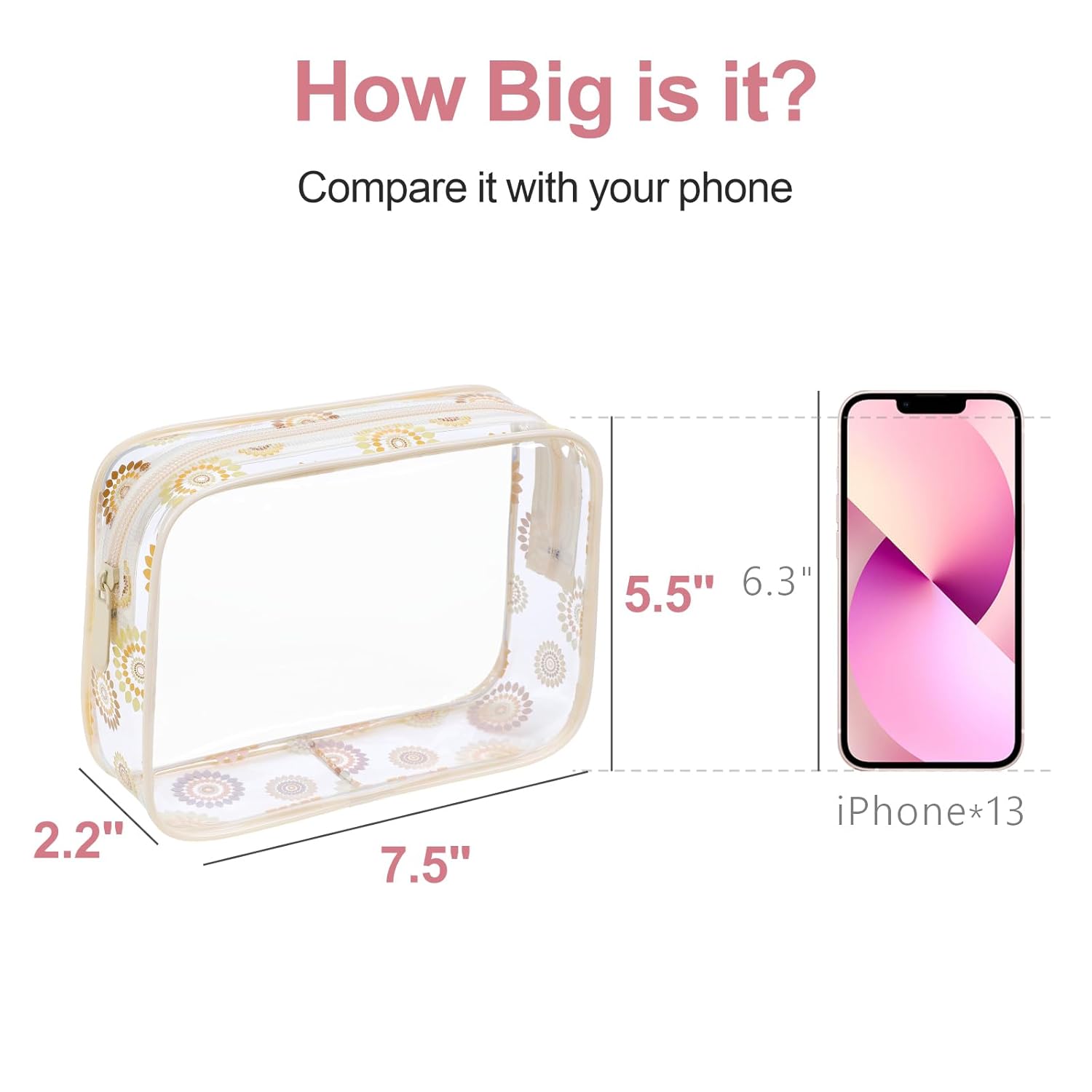 - High-Quality, Durable: The clear makeup bags keep the shape with reinforced boning. Smooth metal zipper for longevity, ensuring a secure seal that complies with TSA regulations for sealed bags. Wide opening for easy access. A net weight of only 0.7 lbs per bag, light and feelless