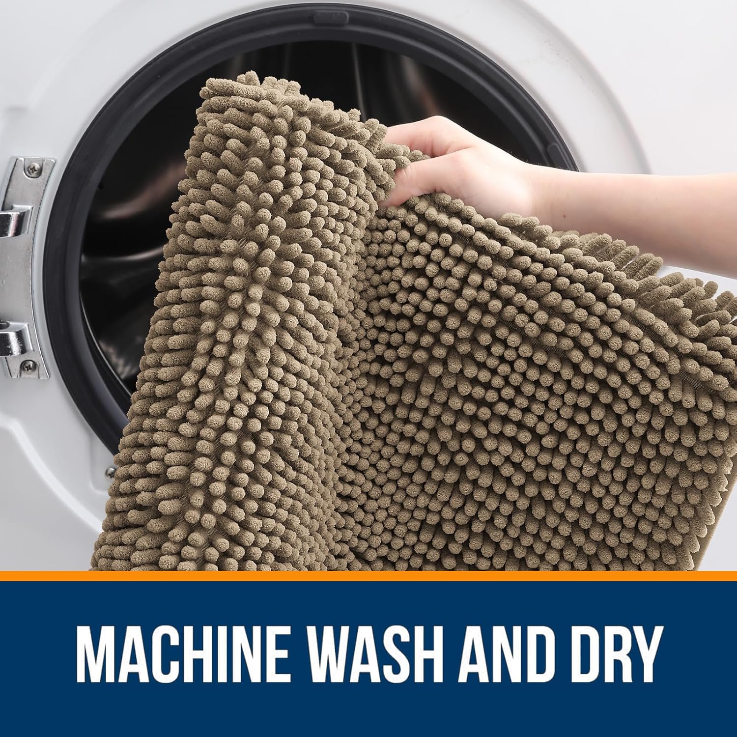 OLANLY Bathroom Rugs 47x20, Extra Soft Absorbent Chenille Bath Rugs, Rubber Backing Quick Dry, Machine Washable Bath Mats for Bathroom Floor, Tub and Shower, Home Decor Accessories, Tan