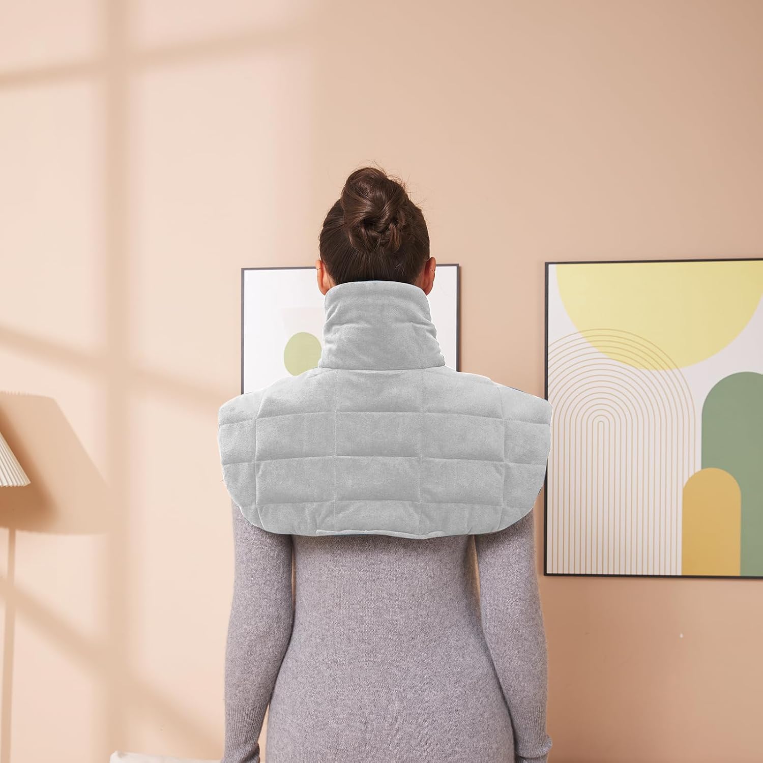 Ambershine 19''x24'' Weighted Neck & Shoulder Heating Pad, 2.5lbs with 12 Temperature Settings& 4 Auto-Off Timers, Pain Relief for Neck/Shoulder/Back, Christmas Gifts for Women Men Mom Dad(Light Gray)
