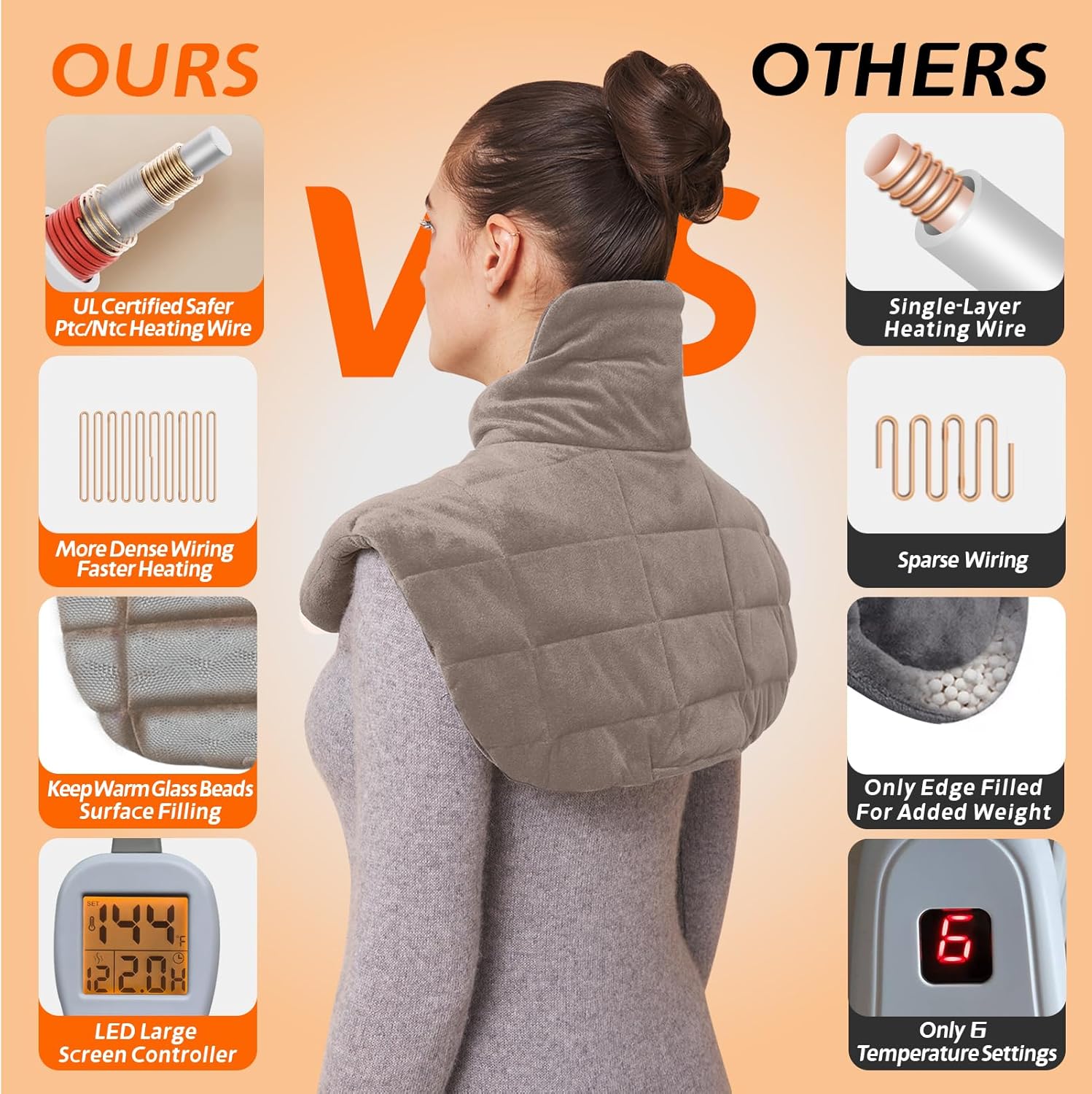 Ambershine 19''x24'' Weighted Neck & Shoulder Heating Pad, 2.5lbs with 12 Temperature Settings& 4 Auto-Off Timers, Pain Relief for Neck/Shoulder/Back, Christmas Gifts for Women Men Mom Dad(Light Tan)