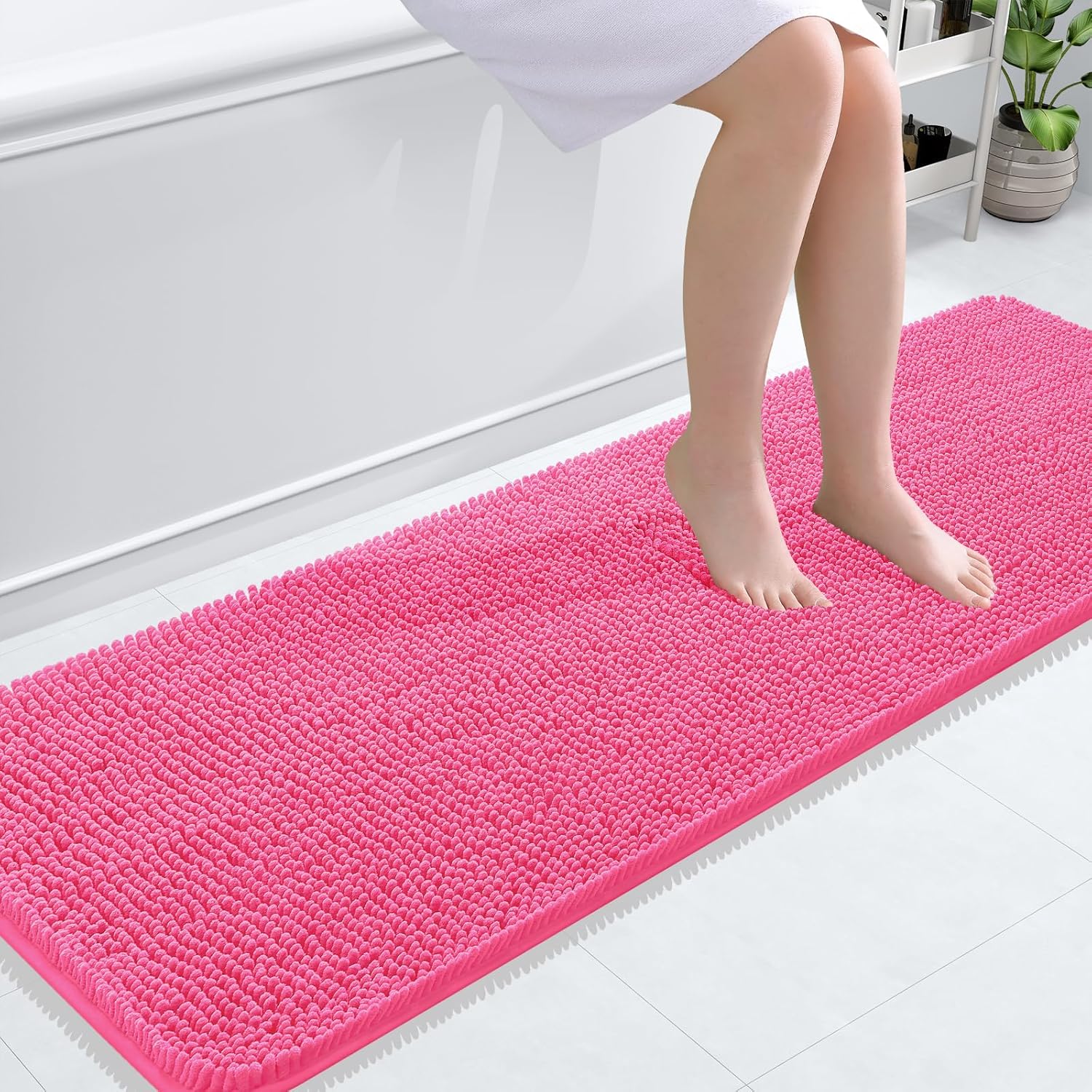 OLANLY Bathroom Rugs 59x20, Extra Soft Absorbent Chenille Bath Rugs, Rubber Backing Quick Dry, Machine Washable Bath Mats for Bathroom Floor, Tub and Shower, Home Decor Accessories, Hot Pink