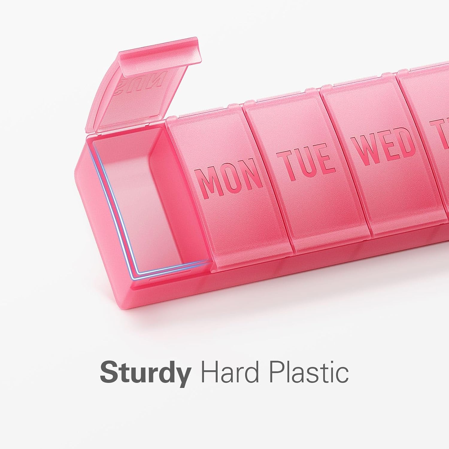 - Upgraded Easy Open Design: Ingenious design with protruding edge of the lids makes the pill case easy to open, no problem for the elderly or arthritis