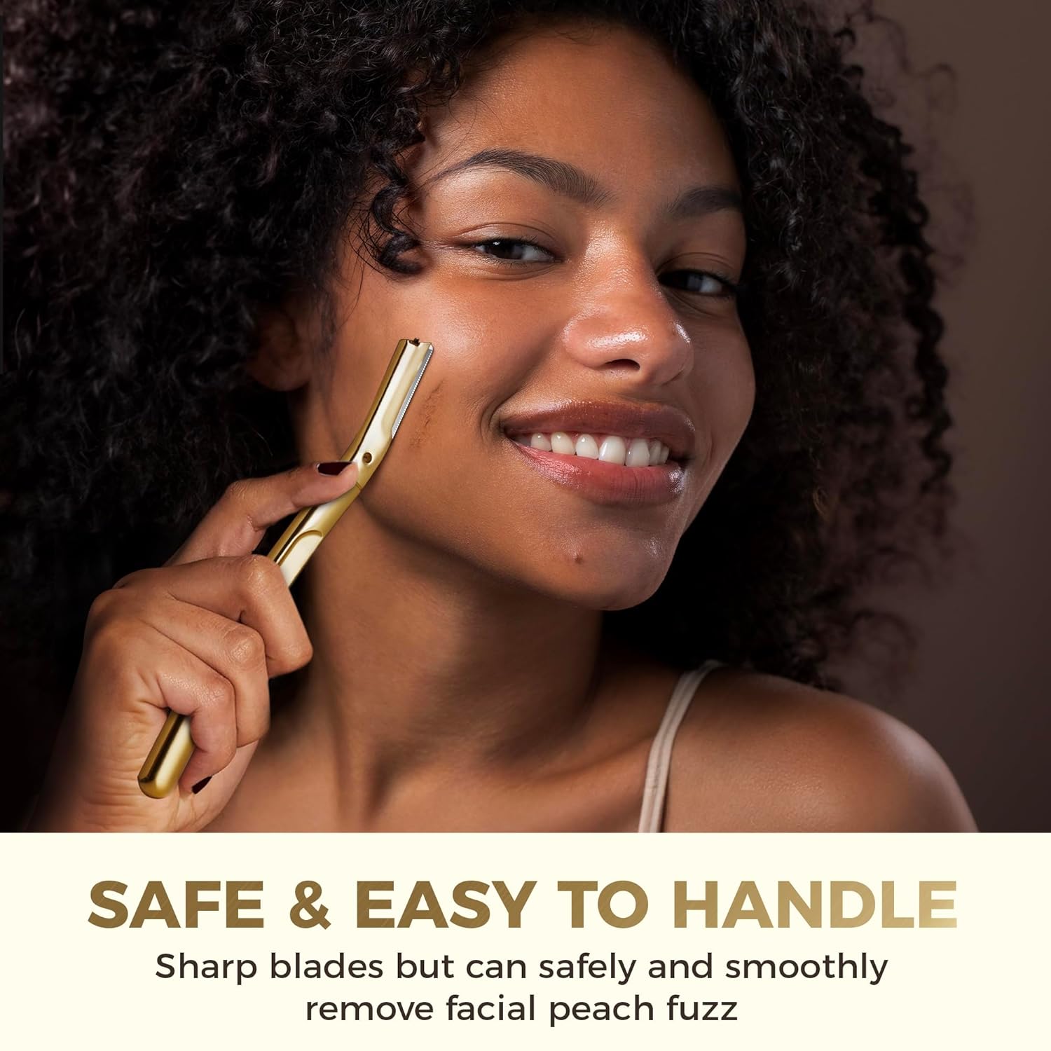 - MULTI-FUNCTIONAL RAZOR: Beyond eyebrow shaping, this face razor can also deal with peach fuzz and facial hair removal as well as body hair, or even exfoliation for smoother skin, providing a multipurpose solution for all your needs. There are two kinds of blades included, micro blades and wide-exfoliating blades. Both for beginners and pros.