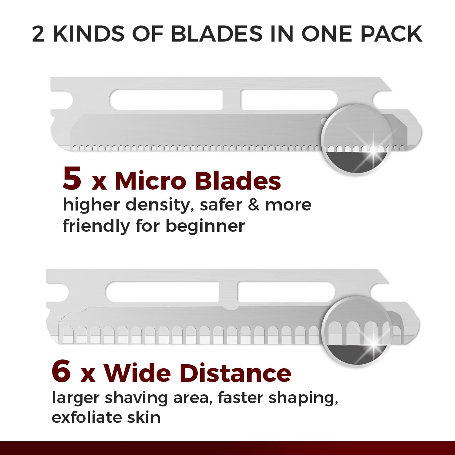 - MULTI-FUNCTIONAL RAZOR: Beyond eyebrow shaping, this face razor can also deal with peach fuzz and facial hair removal as well as body hair, or even exfoliation for smoother skin, providing a multipurpose solution for all your needs. There are two kinds of blades included, micro blades and wide-exfoliating blades. Both for beginners and pros.
