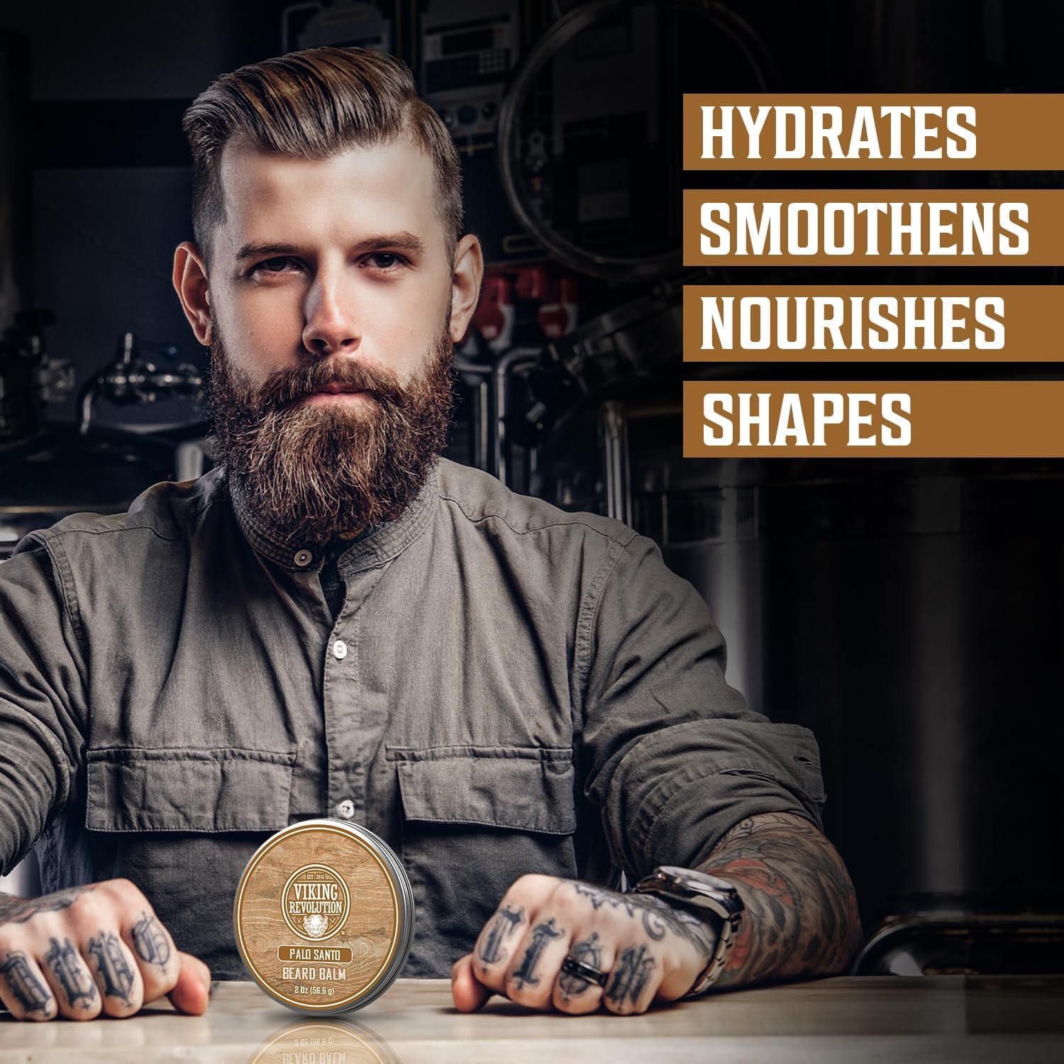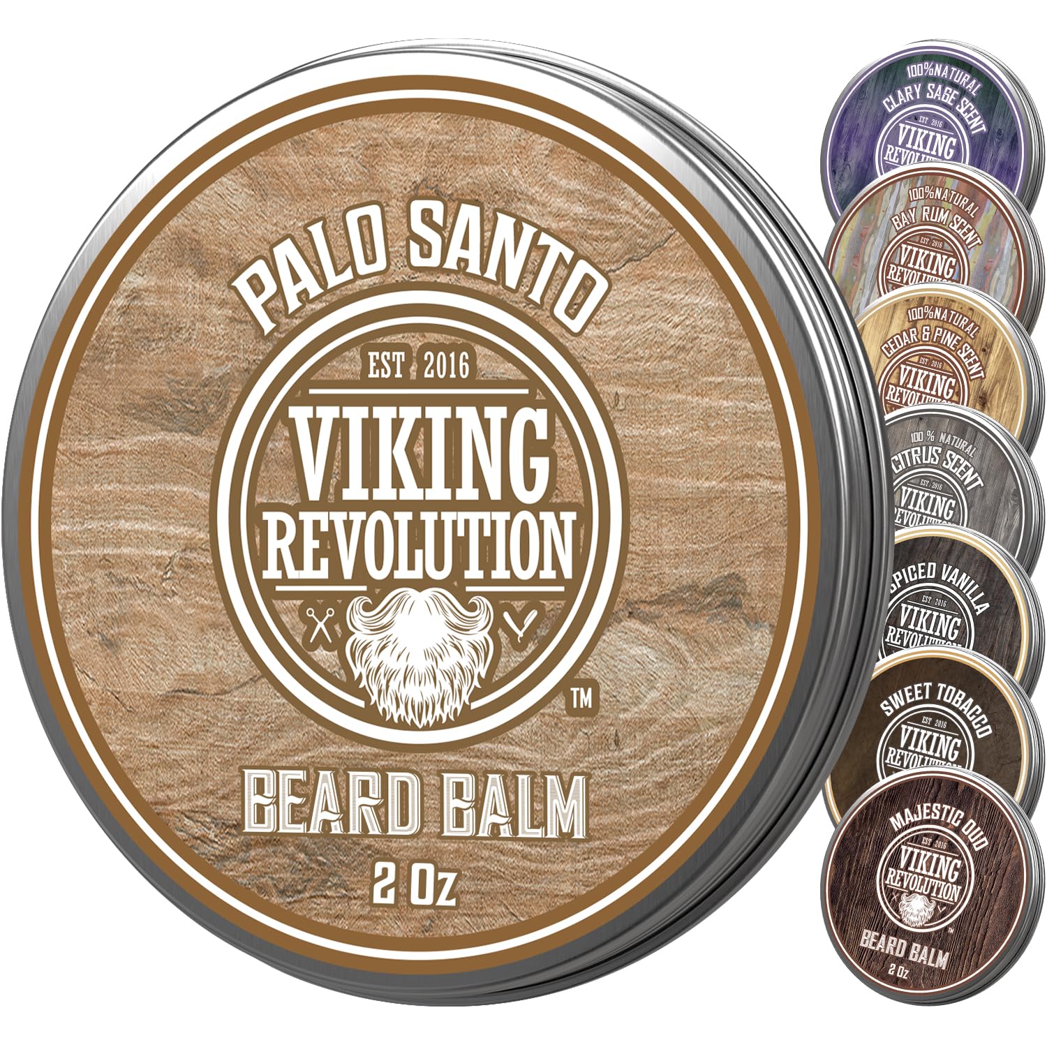 Viking Revolution Palo Santo Beard Balm for Men - Beards Butter for Men with Argan Oil and Jojoba Oil - Beard Softener and Moisturizer for Mens Beards Styling Balm (1 Pack, 2oz)