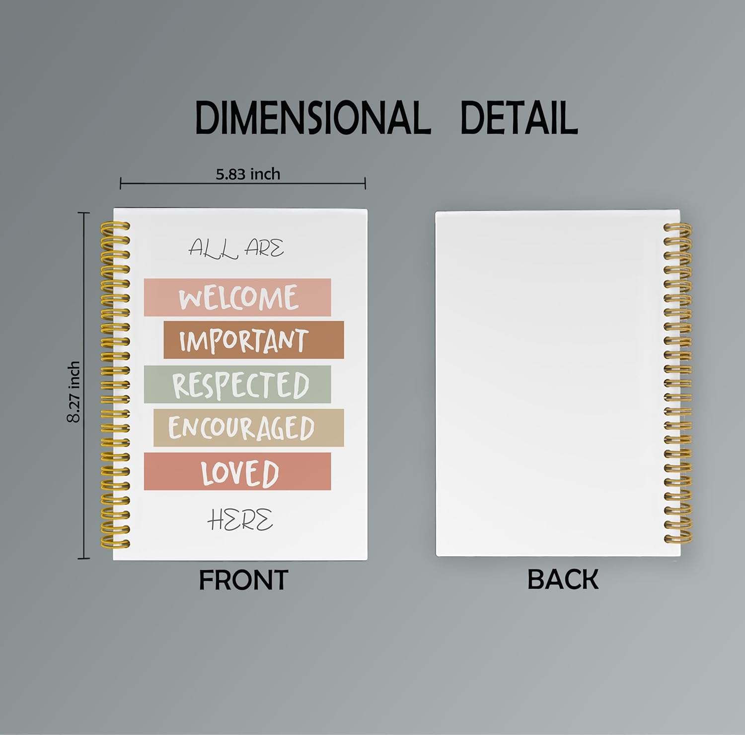 All are Welcome Here Diversity Notebook Journal, Inspirational Notebook, Boho Classroom Supplies, Boho Teacher Supplies, Affirmation Journal, Spiral Notebook 5.5x8.3 with 164 Pages