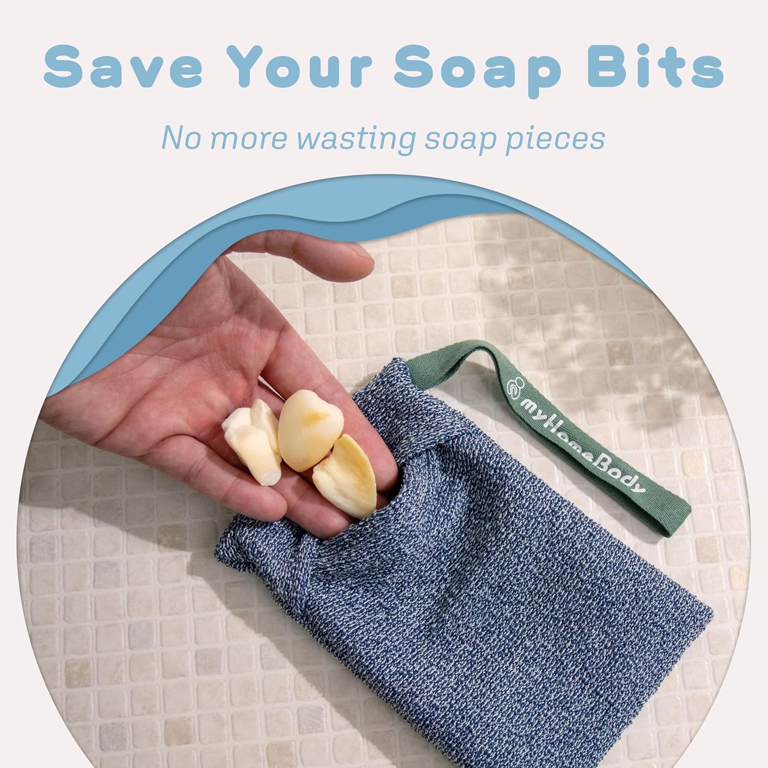 - Produce Rich Lather and Save Your Soap : Our Exfoliating Soap Bag maximizes soap usage by collecting small leftover pieces while quickly generating a rich lather. myHomeBody Soap Saver Pouch prevents soap waste and extends the life of your favorite bars.