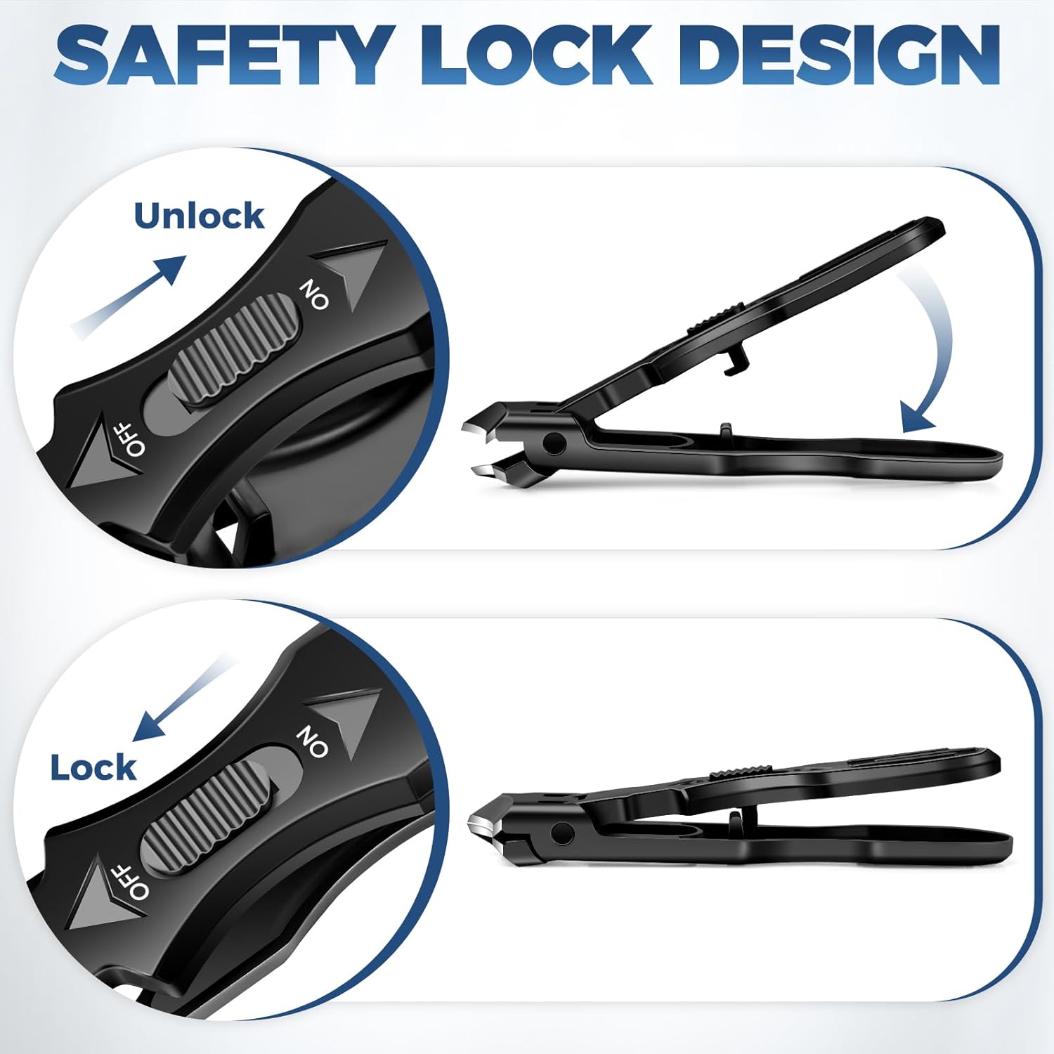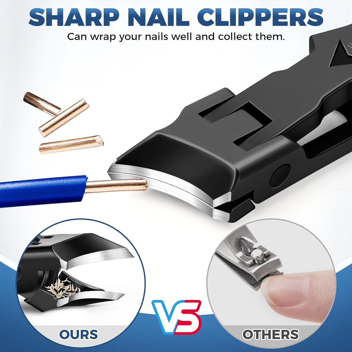 - 【Anti-splash & Safety Lock Design】The nail clipper with catcher design to prevent nails from splashing everywhere in process of nails clipping, keep your house clean after cutting nails; The finger nail clippers adult is wide jaw opening and extremely sharp, so built with a safety lock, push the slide lock into the safe position when you do not use it, and supply a case for carry