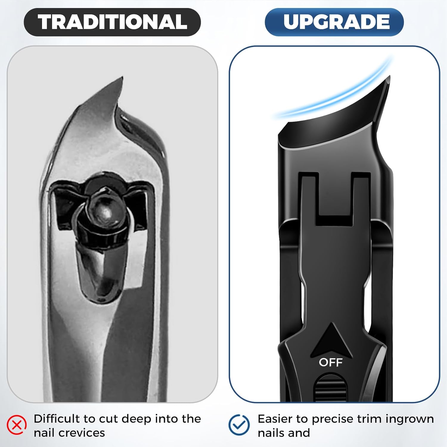 - 【45°Slant Curved Blade for Ingrown Toenail Clippers】: This slant nail clipper adopts a newly upgraded oblique curved blade design, which designs the curvature according to the natural shape of the nails, perfectly fitting the curvature of the nails. The tip of this nail cutter can accurately trim the embedded, sharp corners, small corners, stratum corneum, and peeling skin of your toenails, ensuring smooth and efficient trimming of your nails and avoiding injury