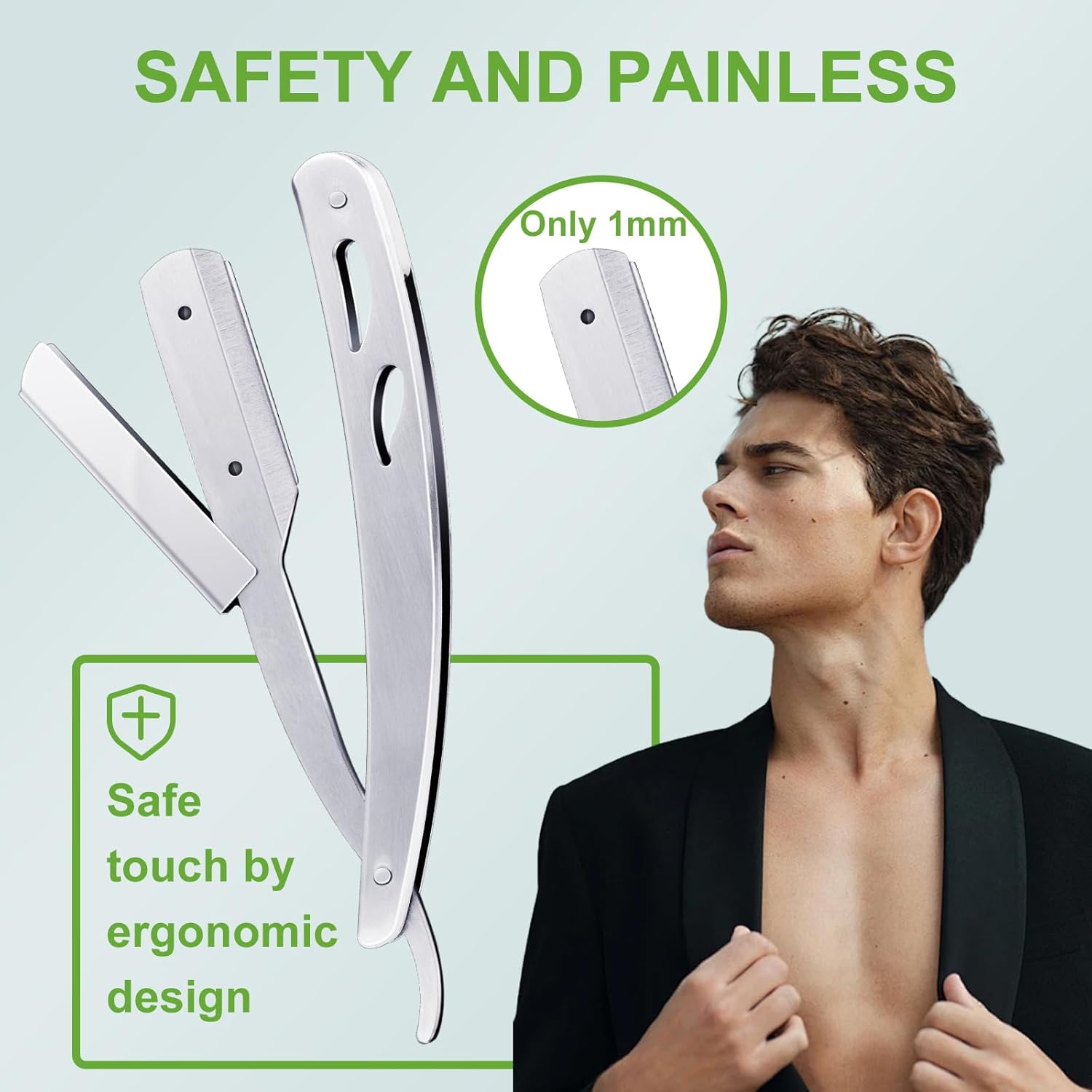 - Safe and Precise Shaving: With only 1mm of blade exposed, the contact area between the blade and the skin is minimised, reducing the likelihood of accidental cuts. At the same time, the shorter blade length makes it easier to control the amount of force and angle applied, and to control the shaving process more precisely