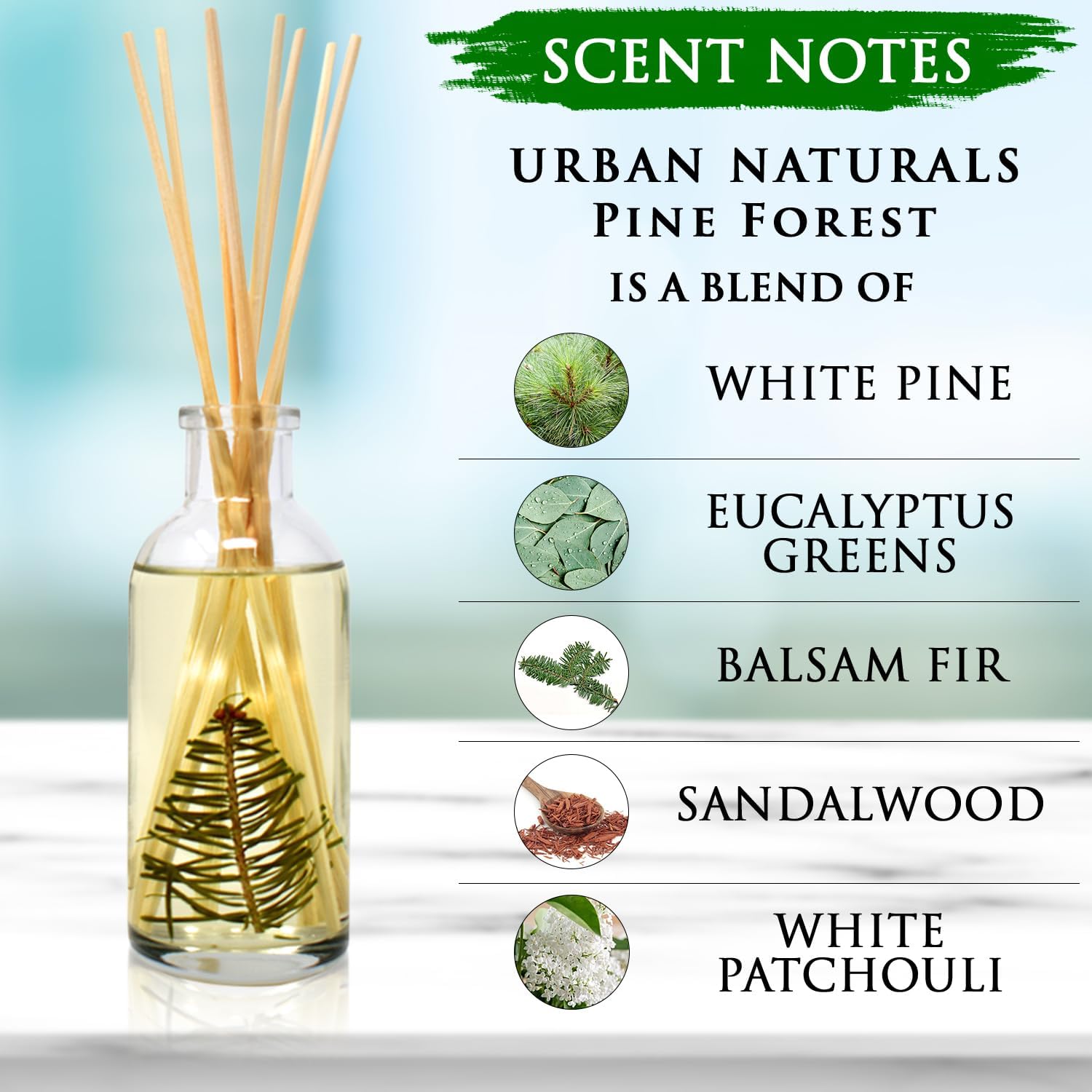 Urban Naturals Pine Forest Reed Diffuser Set - White Pine Needles, Eucalyptus and Sandalwood - Christmas Tree Scent - Holiday Decor with Real Pine Branches