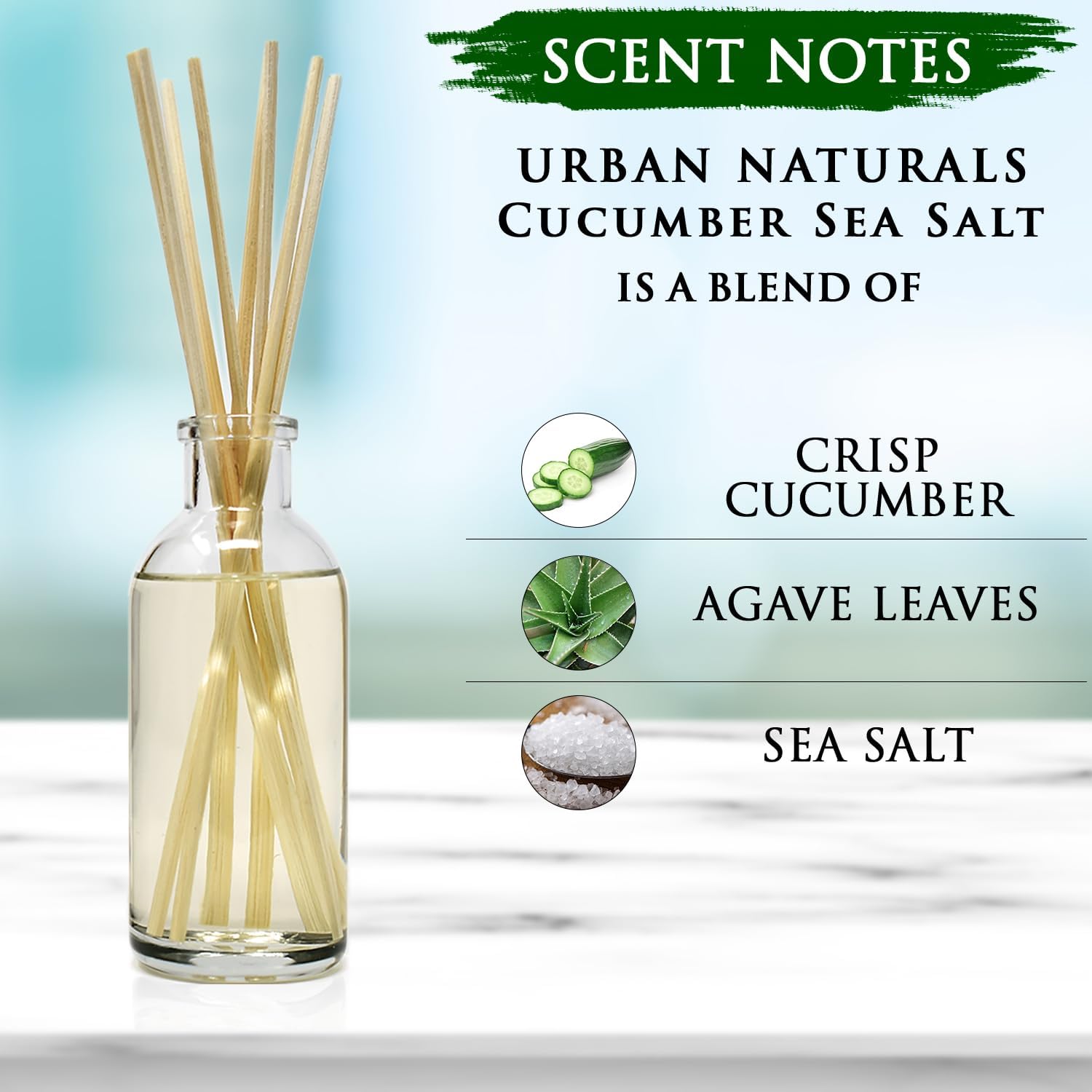 Urban Naturals Cucumber Sea Salt Reed Diffuser Set | Fresh, Crisp Cucumber, Agave Leaves & Sea Salt | Essential Oil Room Scent Kit with Reed Sticks | Made in The USA | A Great Home Gift Idea
