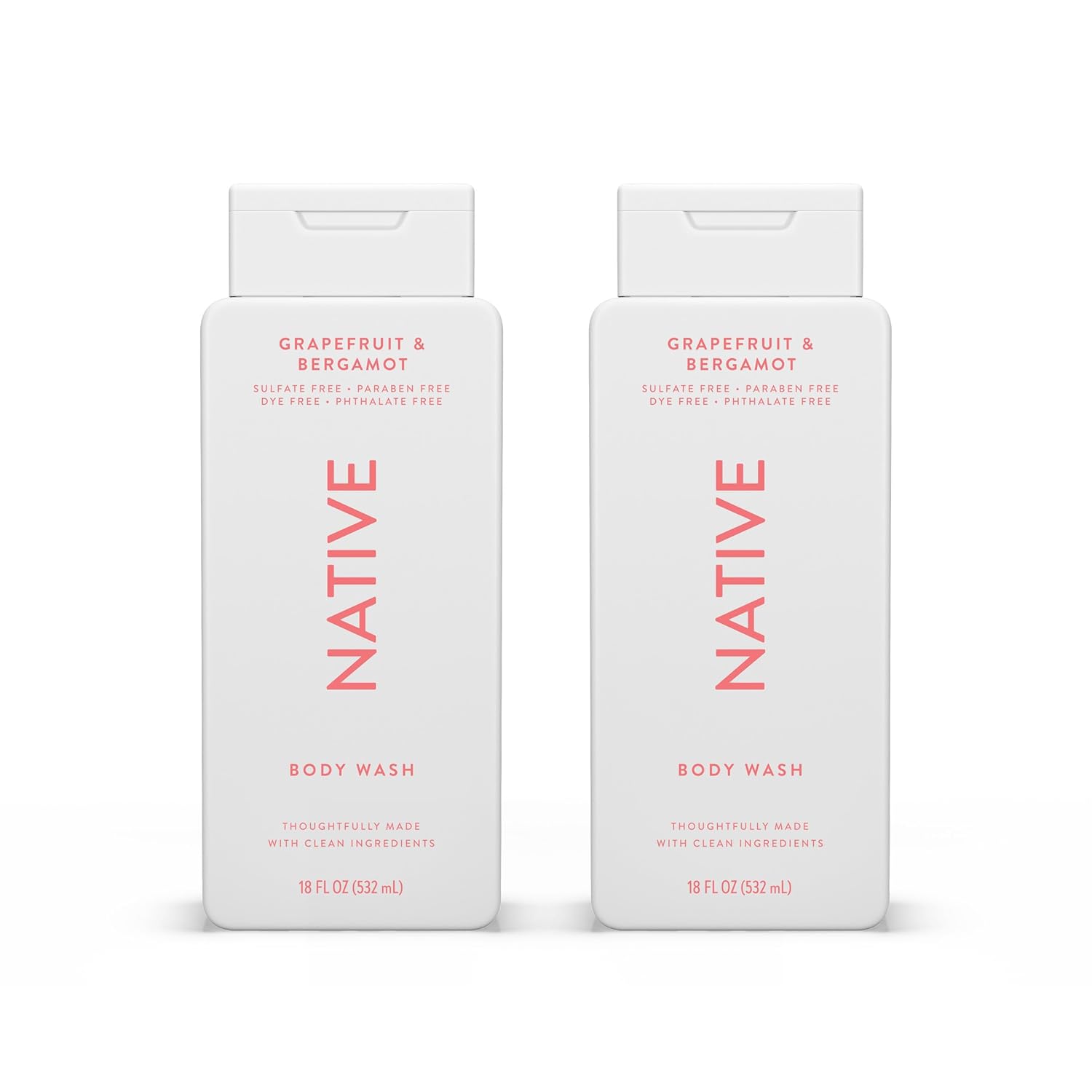 Native Body Wash Contains Naturally Derived Ingredients | For Women & Men, Sulfate, Paraben, & Dye Free Leaving Skin Soft and Hydrating | Grapefruit & Bergamot 18 oz - 2 Pk