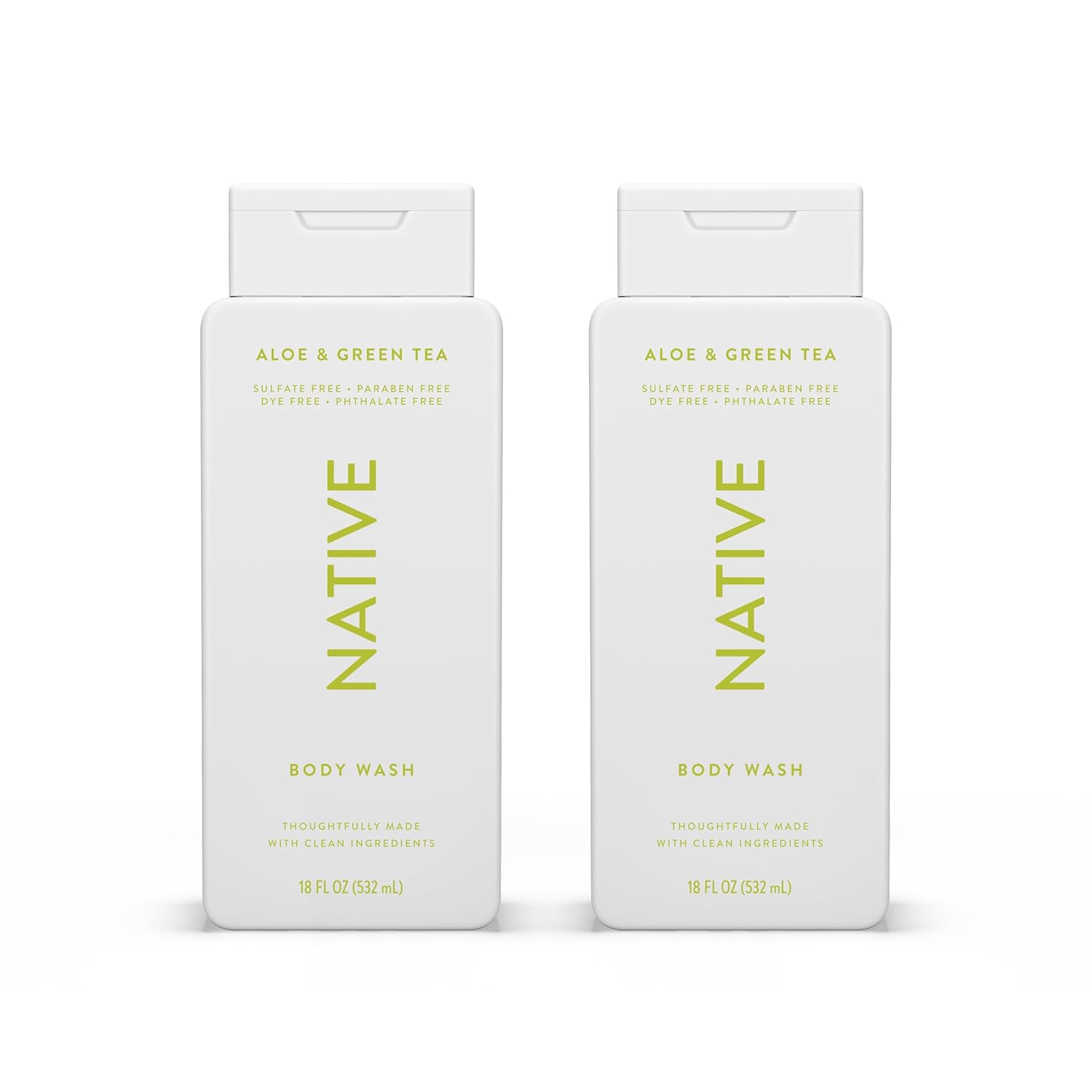 Native Body Wash Contains Naturally Derived Ingredients | For Women & Men, Sulfate, Paraben, & Dye Free Leaving Skin Soft and Hydrating |Aloe & Green Tea 18 oz - 2 Pk