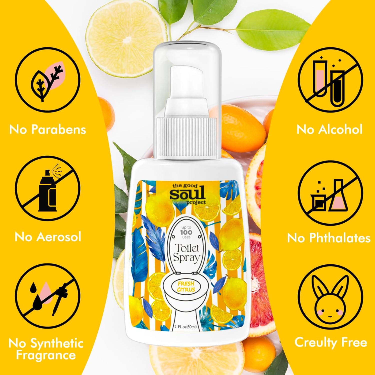 Toilet Spray for Poop, Fresh Citrus, Bathroom Spray Odor Eliminator, 2Fl Oz 2 Pack