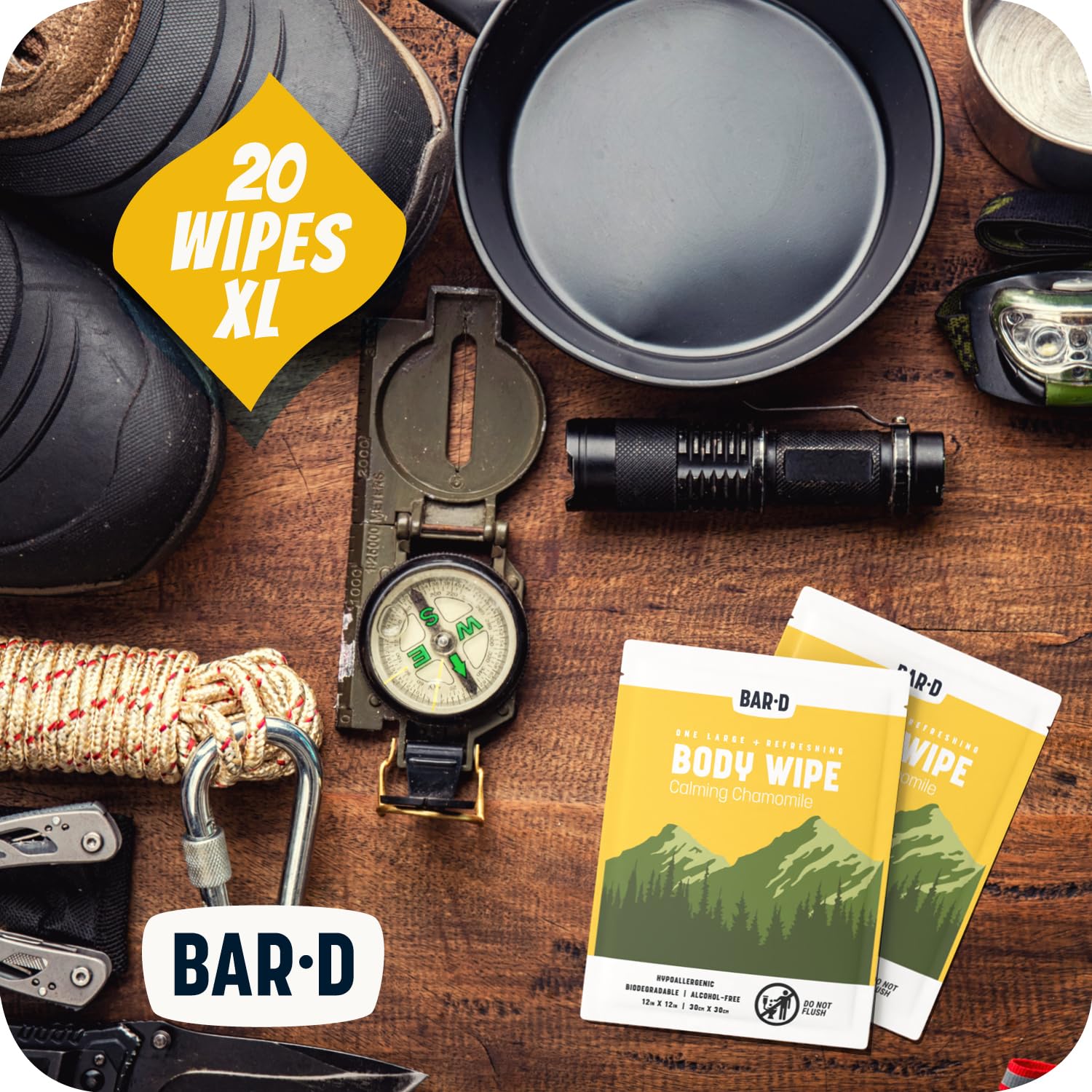 Bar-D Cleansing Face & Body Wipes for Women and Men - Individually Wrapped Biodegradable Shower Wipes with chamomile, 12x12 Inch, Pack of 20 (20 Count/Box), Chamomile scent