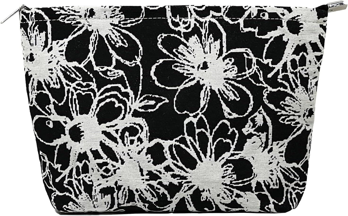 Floral Makeup Bag for Women,Travel Makeup Pouch for Purse, Black Zippered Pouch, Canvas Make Up Bag L Comfortable Lightweight Makeup Bag, Zipper Bag Cosmetic Bag for Women
