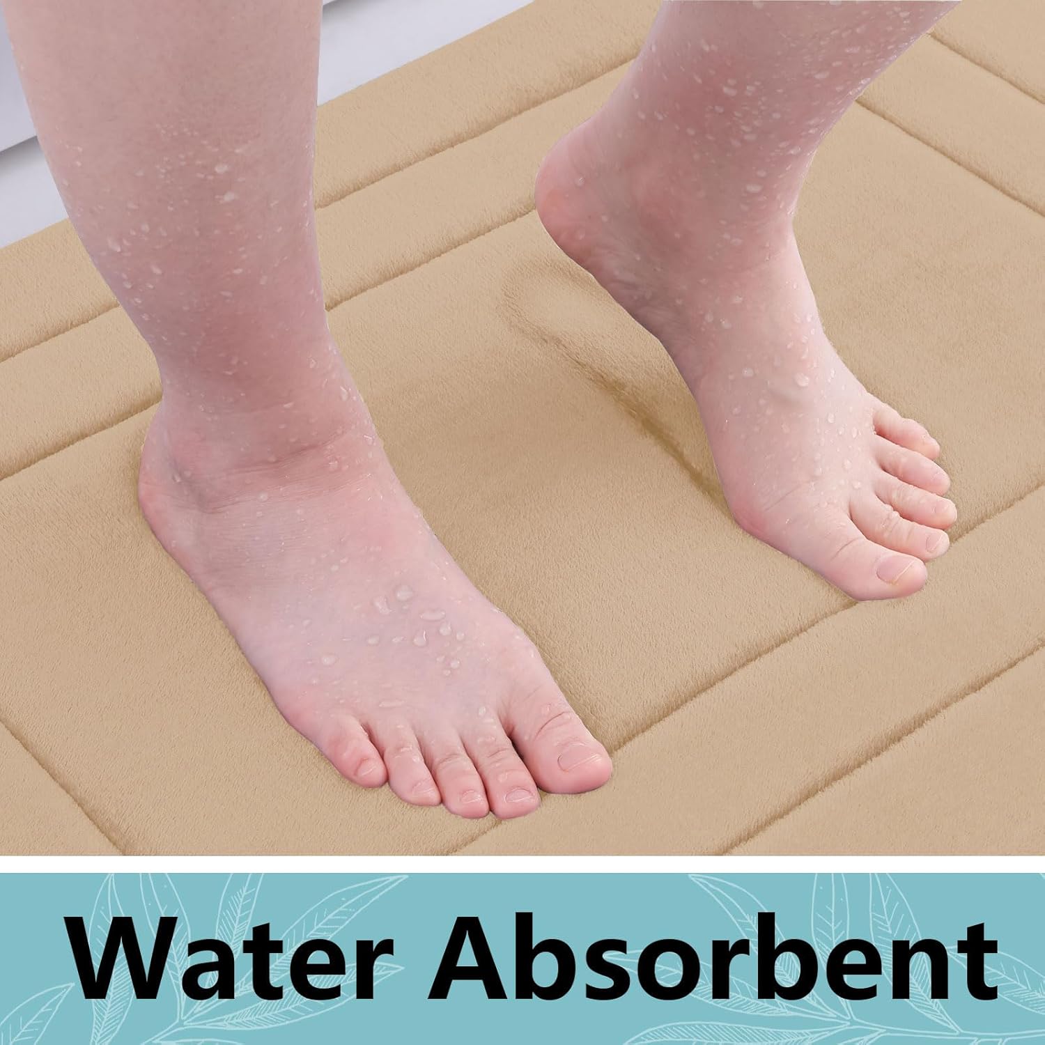 - Water Absorption : Our Memory Foam Bathroom Rug Mat features a soft flannel layer that has notable water-absorbing capability, ensuring a dry surface on the bathroom mat while keeping feet dry. Enjoy the convenience of a quick-drying and reliable bath mat