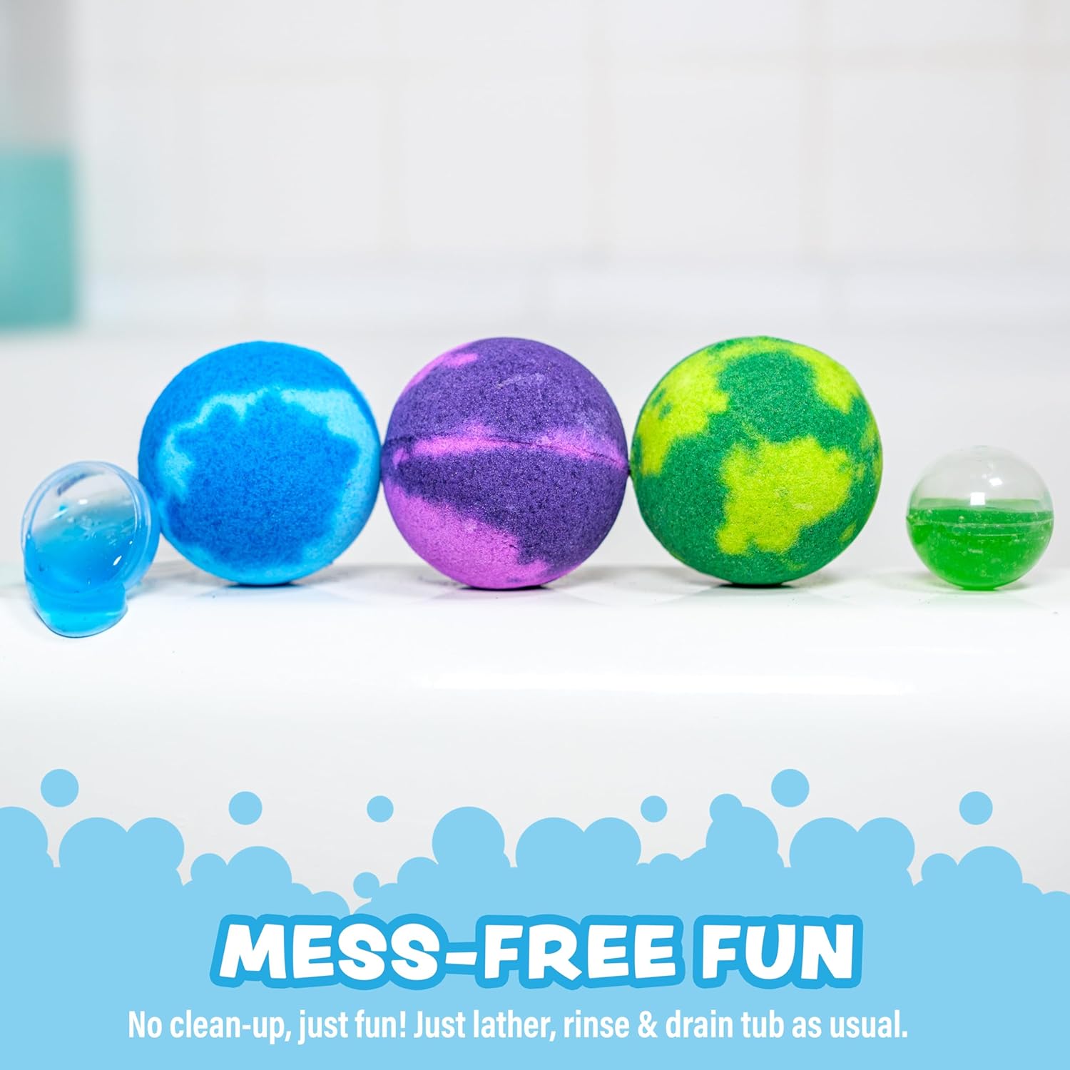 - MESS-FREE FUN: These kid bath bombs are non-staining & dissolve fully in the tub - to clean, simply rinse & drain tub. Play and enjoy the gooey texture of the slime soap "surprise" as you work it into a creamy lather that is easily rinsed off.