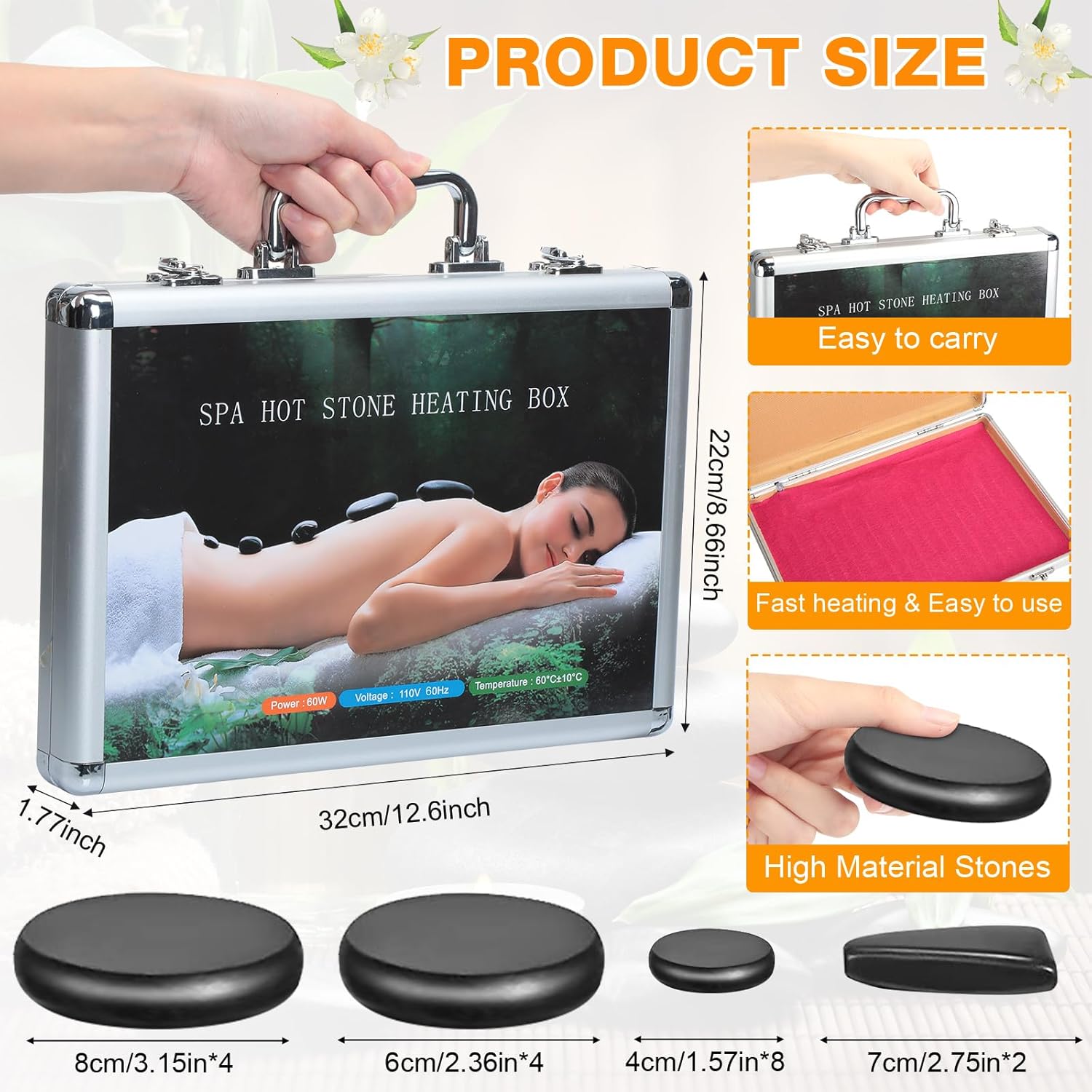 - Safe and Easy Heating: Equipped with a portable heating box. Heat stones to 120–140°F, then cool for 2 minutes before use. Ideal for home spa routines, personal wellness, or relaxation before sleep. Boil before first use to sanitize