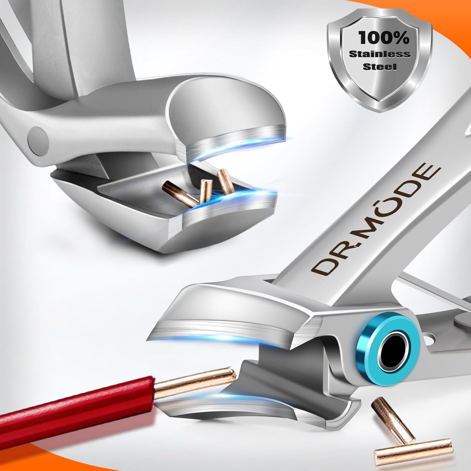 - EXTRA SHARP - DRMODE large nail clippers is made of premium stainless steel, the blades made by repeated polishing and grinding process are harder and more sturdy than ordinary nail trimmer, cutting smoother and more precise without jagging or tearing. These ingrown toenail clippers are easy to clean and will not rust or corrode when immersed in water or exposed to humid environments such as bathrooms