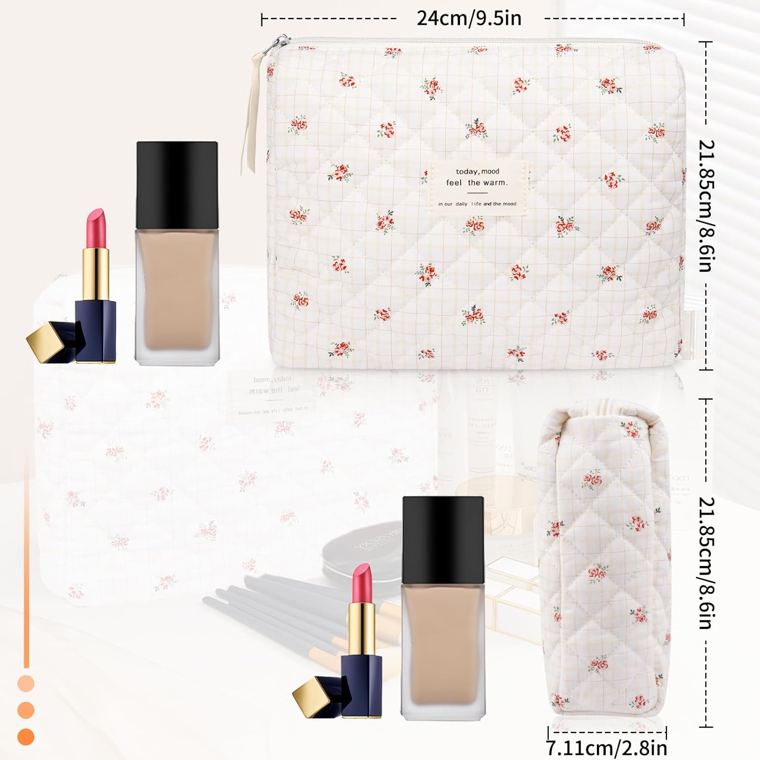 - ✅Large Capacity: Floral cotton makeup bags size(21.8*21.8*7.11cm/8.6*8.6*2.8in) and is easy to carry. Is the perfect choice and ideal companion for any traveler. The large capacity cosmetics bag can lipstick, cosmetic accessories, lipstick, lip gloss, brushes, skincare products, toiletries, 3c items, stationery kit, watercolor pens pencils, and painting brushes, and can be easily folded up and placed in a handbag or suitcase when not in use.