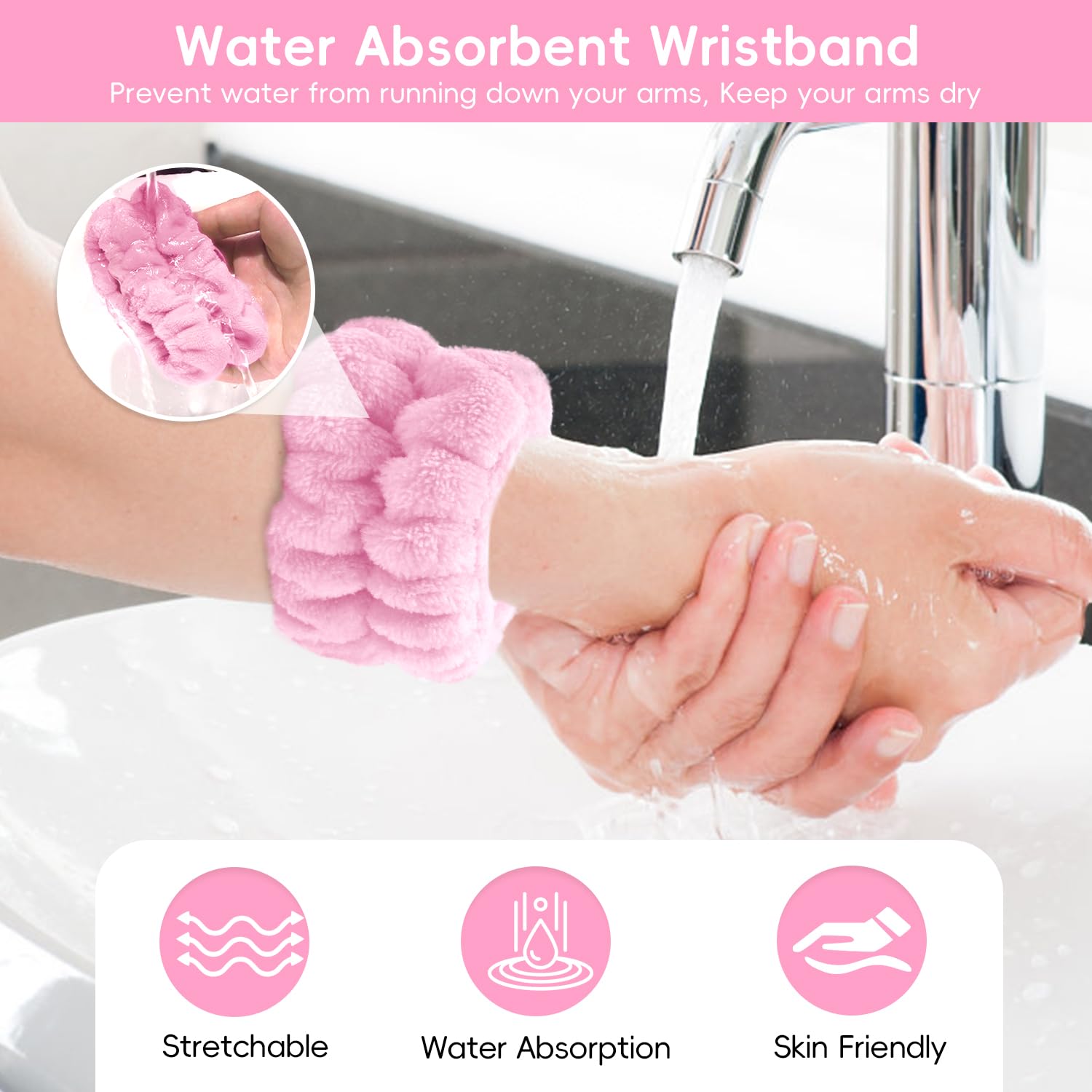 - 【Stay Dry, Enjoy Worry-Free Skin Care】The skincare headband and wristband set is the ideal companion for your daily skincare routine. They are not only fashionable and cute but also very practical. The face-washing headband keeps the hairline dry, preventing annoying wet strands from sticking to your face. The accompanying face-washing wristbands are ingeniously designed to prevent water from flowing onto your arms and clothes. Choose our face-washing headband and wristband set for a dry skincare experience, no longer worrying about splashes wetting the bathroom.