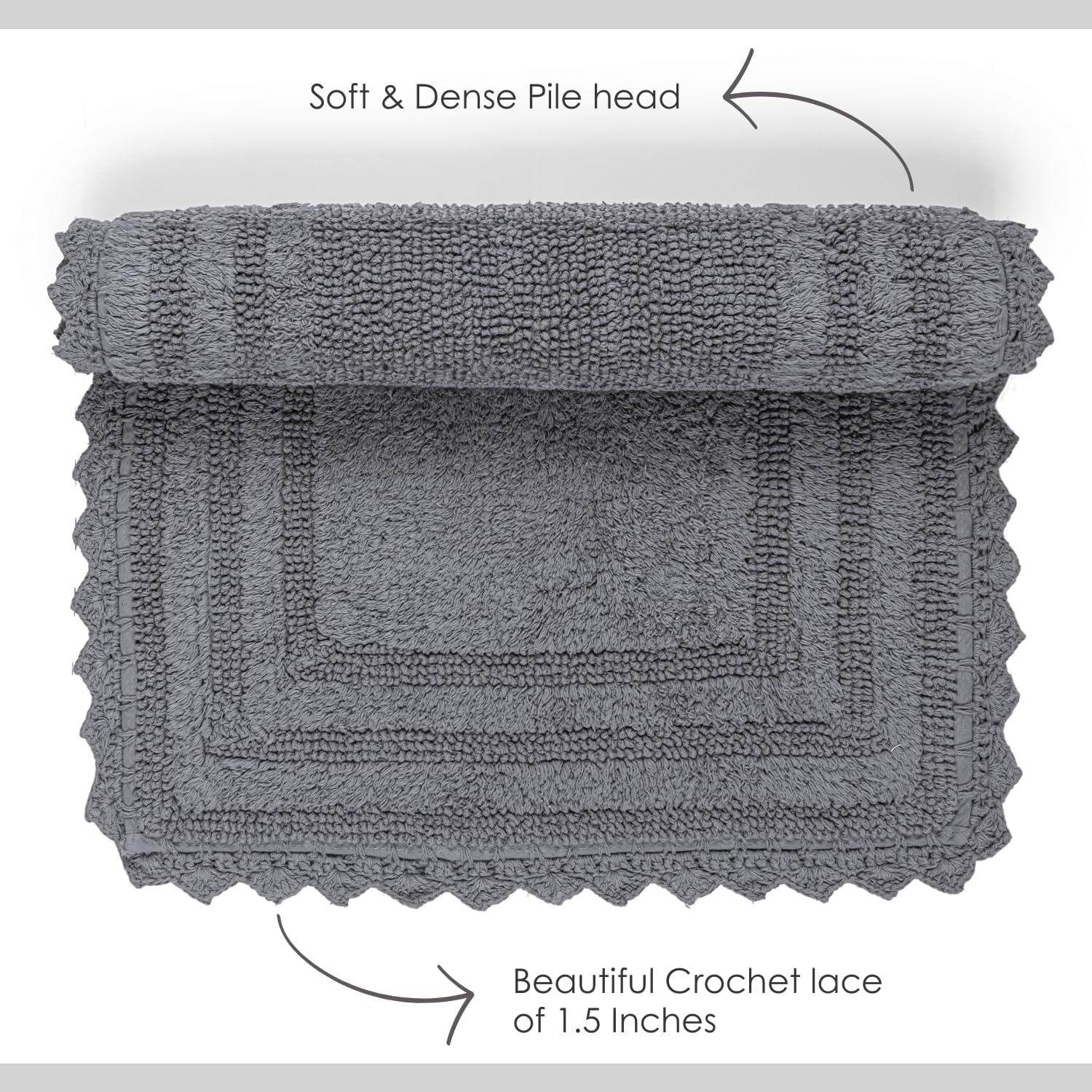 RAJRANG Titanium Grey Cotton Bath Rug – Rectangle 34x21 Inches with Crochet Edge – Reversible, Absorbent, Soft Boho Mat for Bathroom, Vanity, Spa, or Kitchen Use