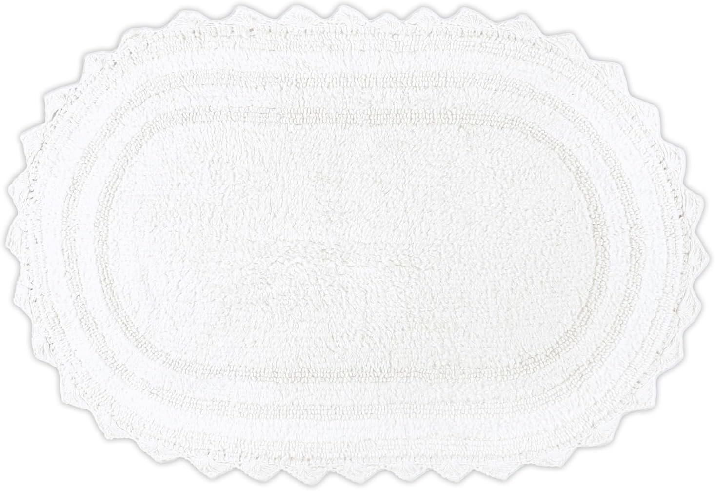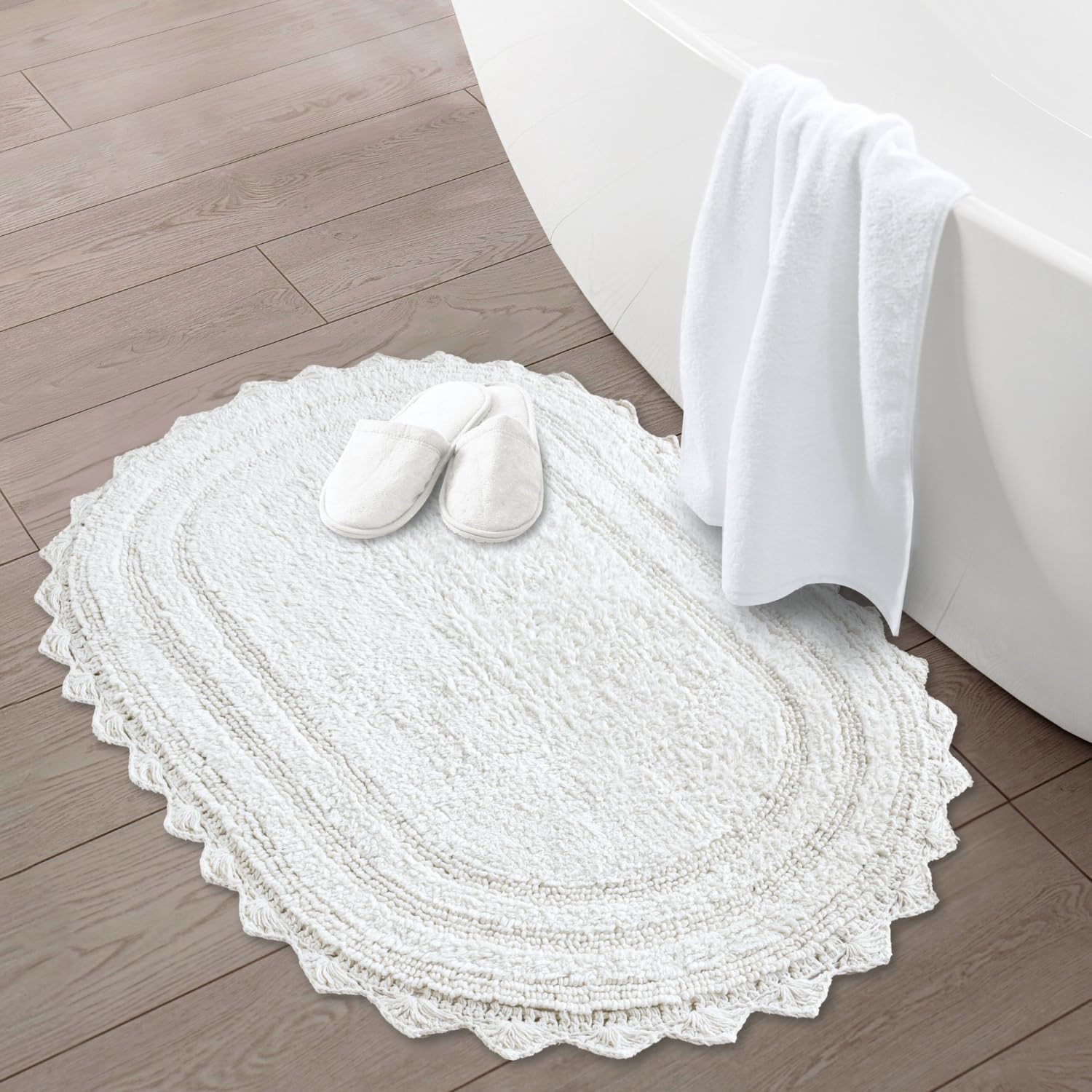 RAJRANG White Cotton Bathroom Rug Oval 21x34 Inch – Reversible Crochet Bath Mat for Bathroom, Entryway or Kitchen – Soft & Washable