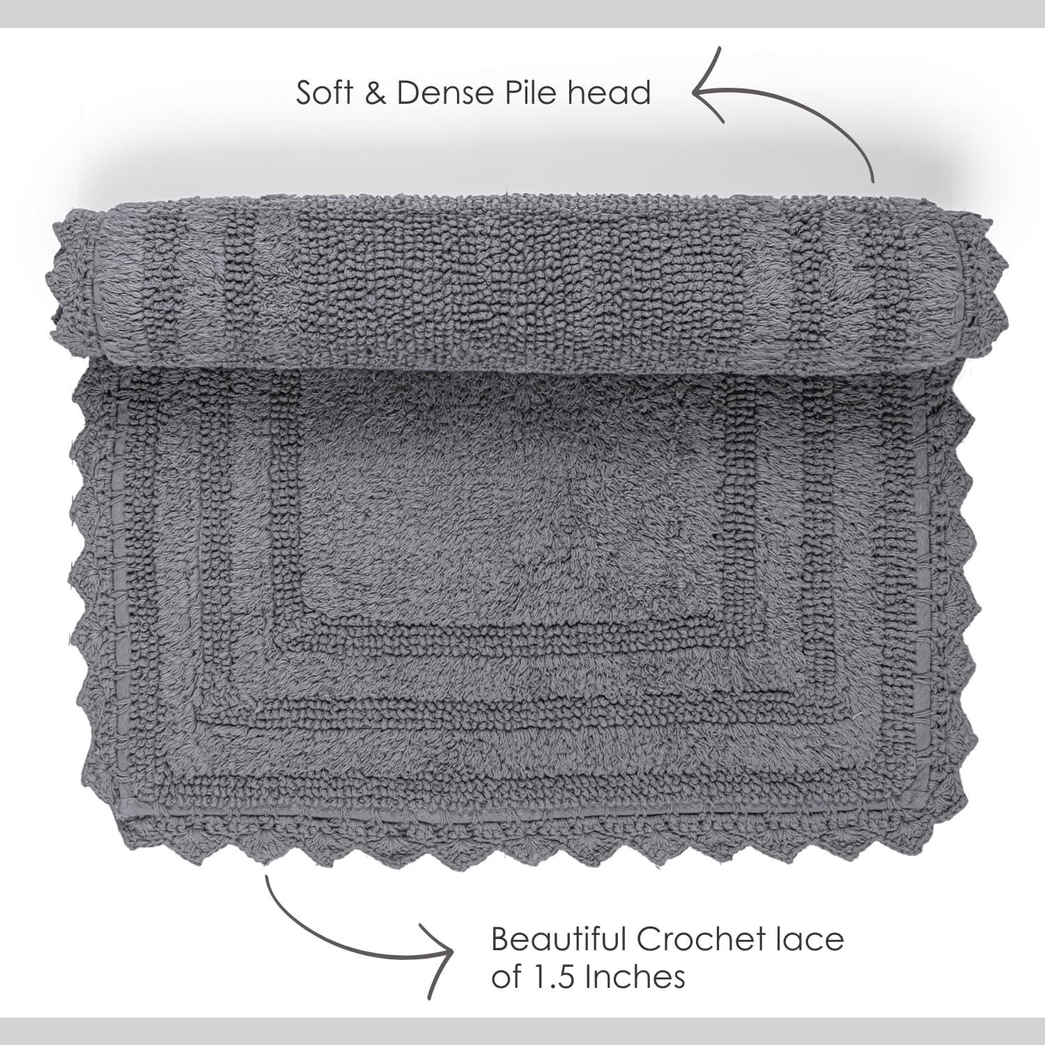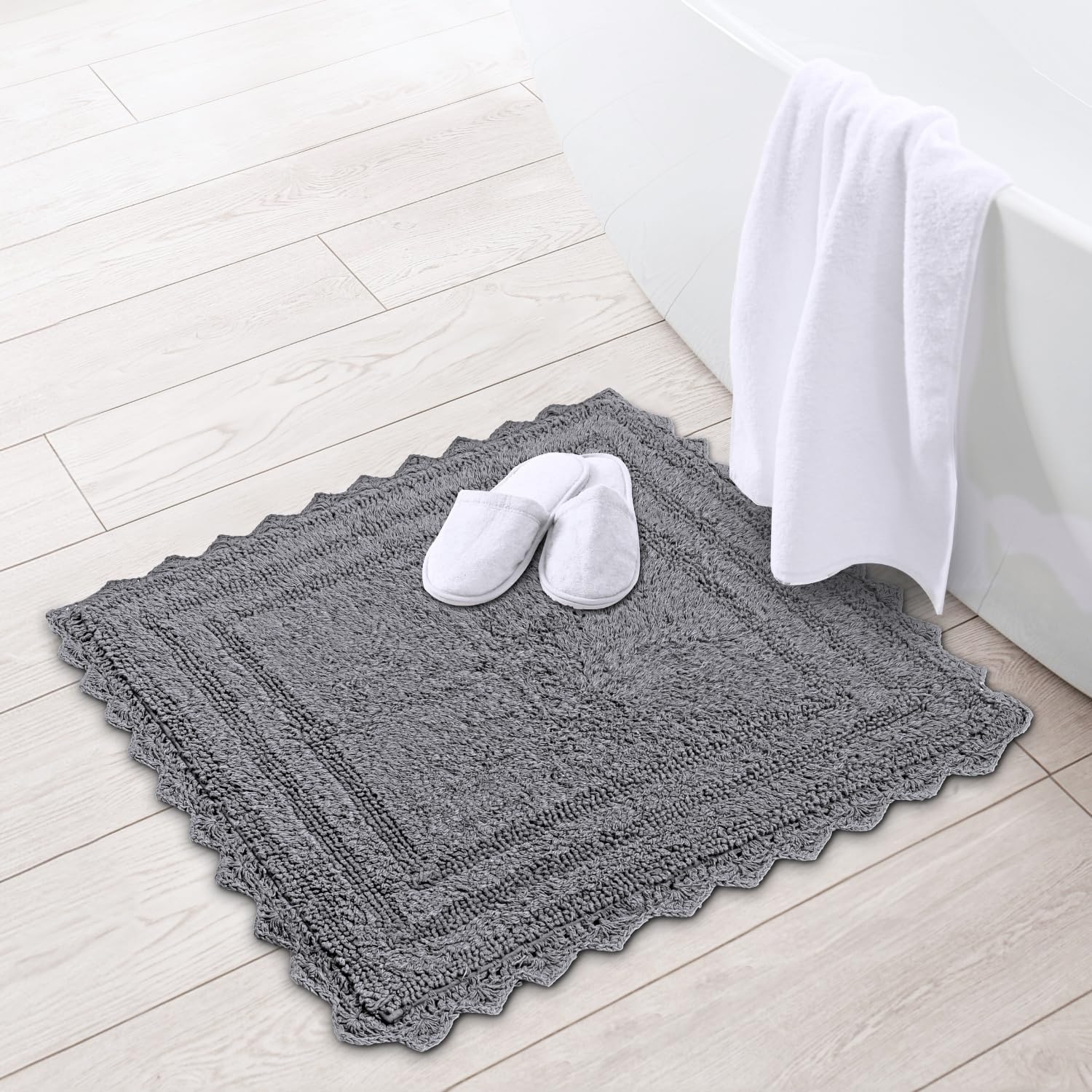 RAJRANG Titanium Grey Square Cotton Bath Mat – 24 Inch Crochet Pattern Bathroom Rug, Absorbent and Reversible Soft Mat for Daily Use in Vanity, Spa, Kitchen, or Entryway Decor