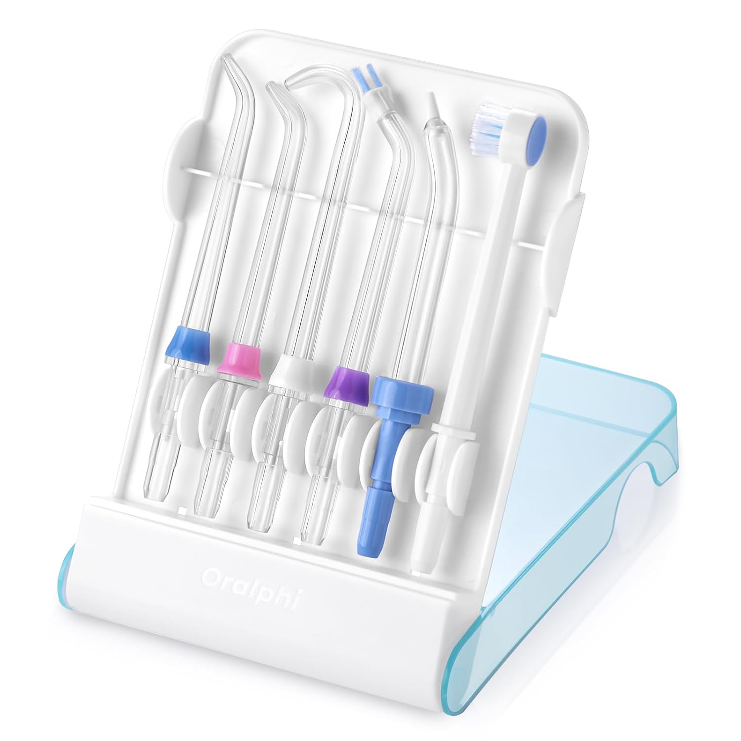 - Unique Design Water Flosser Tips Storage Case: Hygienic and convenient storage case features an easy-open and hinged flip top. It can be flipped into a stand to place on the countertop. You can also close the lid and put it into your travel bag. Moreover, the space has been upgraded to accommodate any style of 6pcs nozzles.