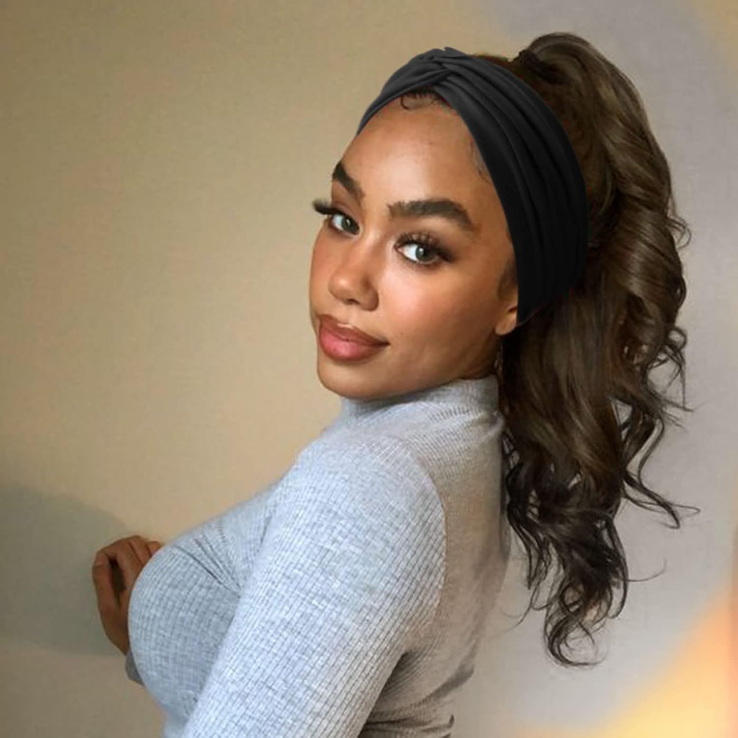 Extra Wide Headbands for Women Large Turban Headband Non Slip Boho Elastic Hairband Hair Twisted Knot Head Bands Accessories