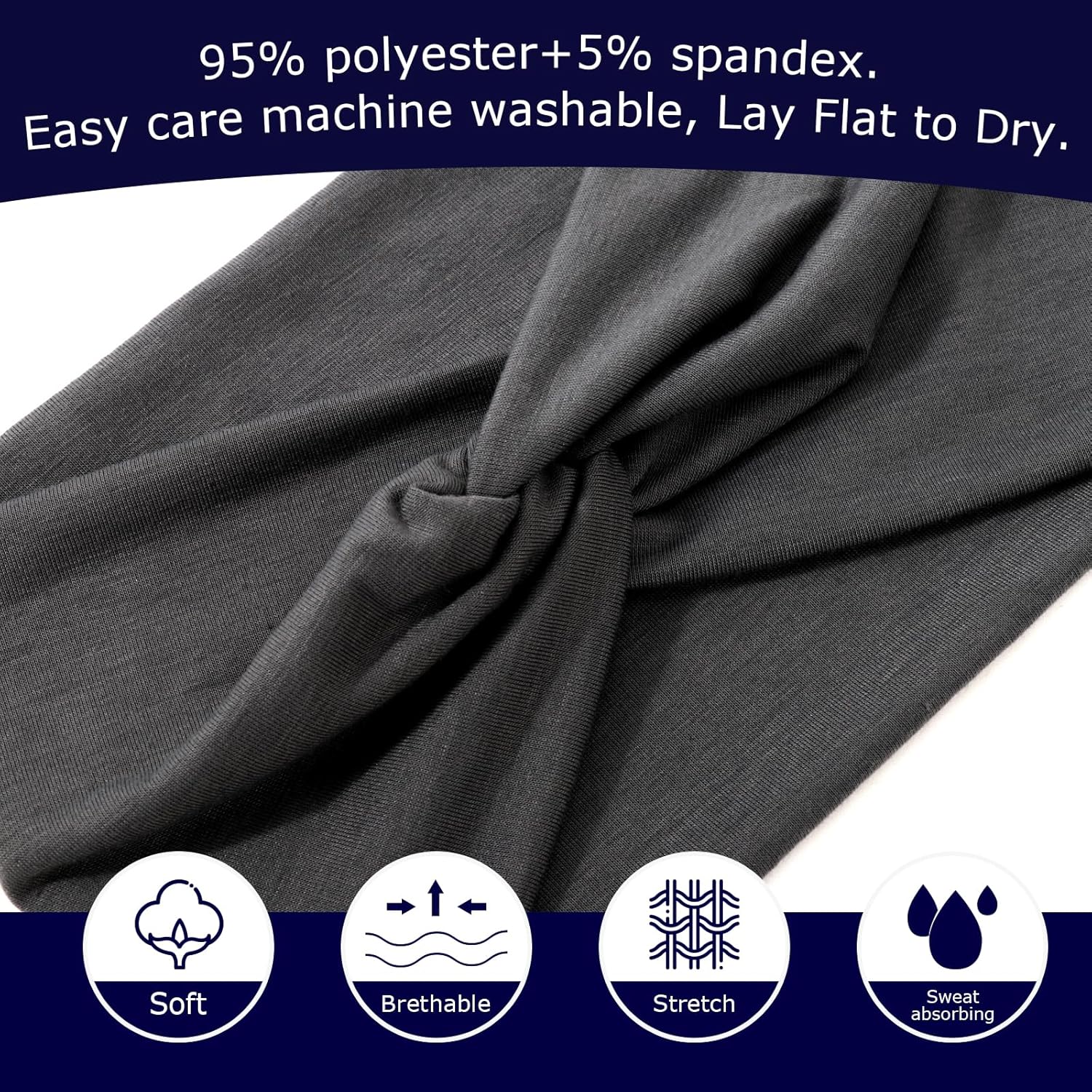 - Great Material - AQOKKA wide headbands for women are made of high-quality polyester and spandex. The fabric is breathable and soft with excellent sweat absorption to keep your forehead dry without bringing a stuffy feeling, which can keep your forehead dry and cool without bringing a stuffy feeling. These headbands have excellent support, you can wear them all day without pain.