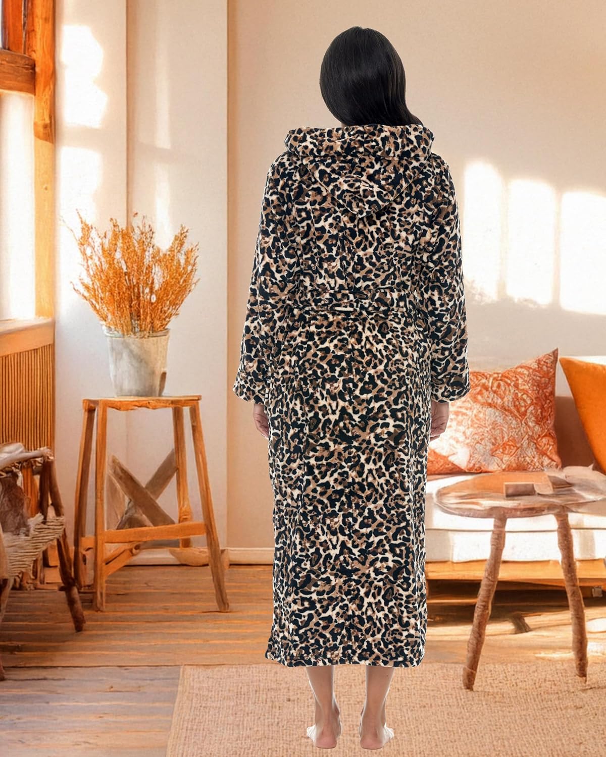 - THICKER - 2 times thicker than average fleece robe for women bathrobe. Hooded Bath robes female with male versions also available. The ideal, stylish housecoats for women for Fall and Winter. Plus size 2X, Desert Leopard robe by Alexander del Rossa.