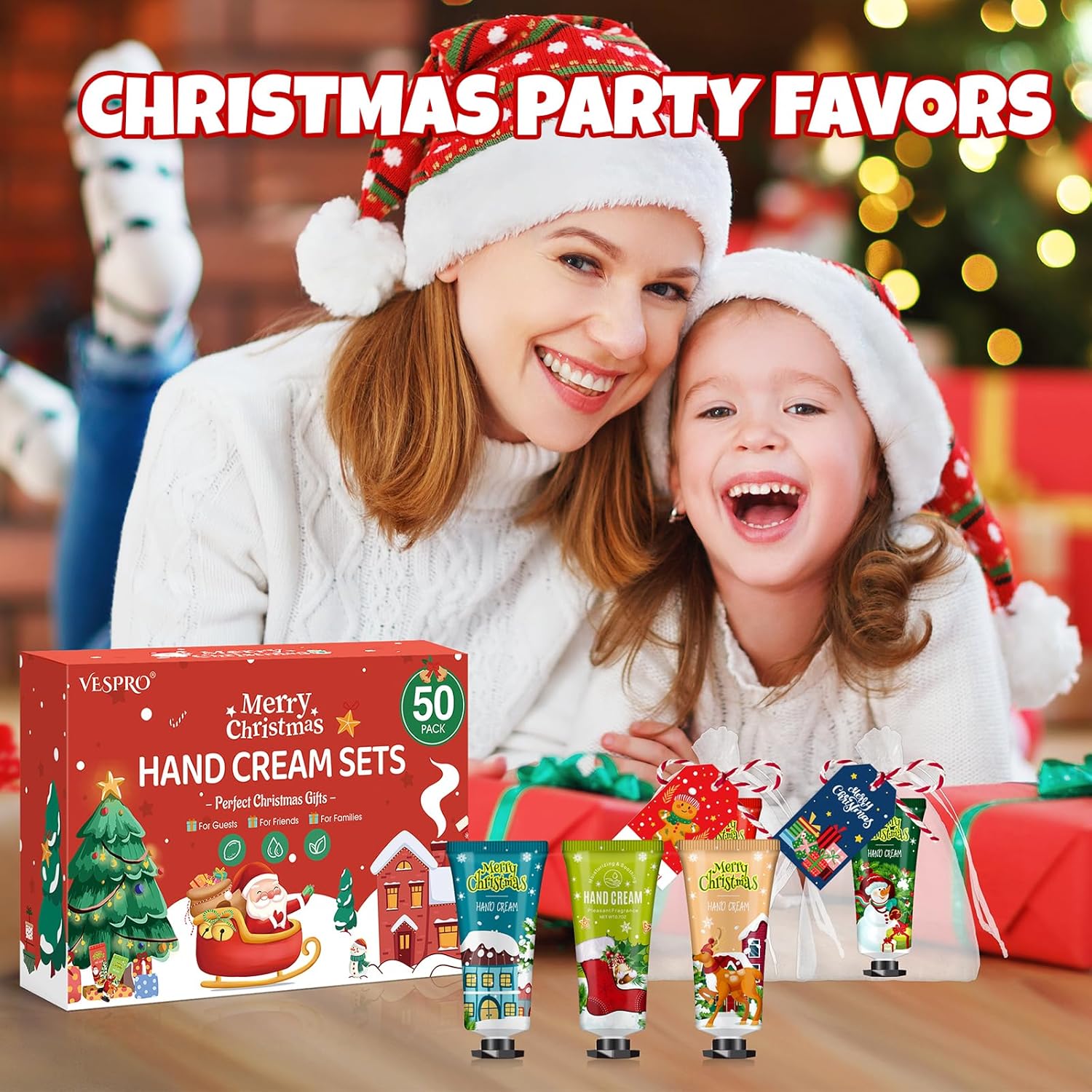 VESPRO 50 Sets Christmas Hand Cream Gift for Women, Hand Lotion for Christmas Party Favors with Christmas Cards and Organza Gift Bags, Christmas Decorations and Stocking Stuffers Gifts for Women