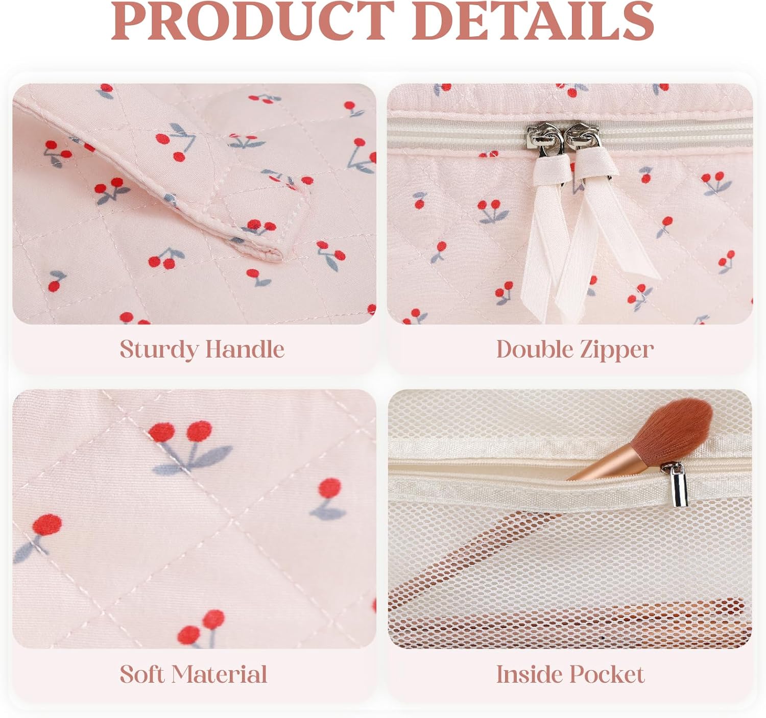 Prite Large Cosmetic Bags for Women Cute Makeup Bag Floral Coquette Aesthetic Toiletry Bag Travel Make Up Organizer Bag (Cherry)