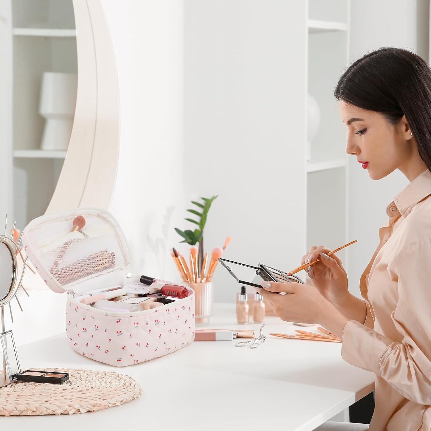 - ✅ Large Capacity: This spacious makeup bag (16cm x 16cm x 25cm) is perfect for travelers, fitting all your cosmetic essentials, skincare products, stationery, and more. Its compact design allows easy storage in handbags or suitcases.