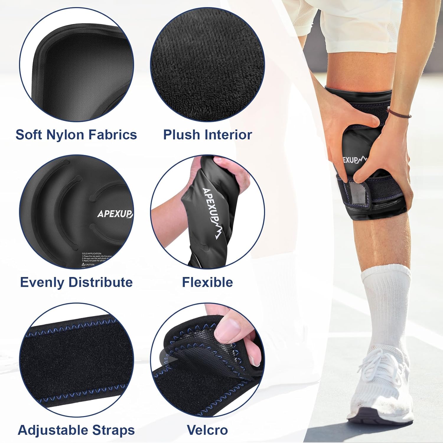 - [REUSABLE & LONG LASTING] The APEXUP gel ice pack for knee features a silky nylon fabric outer layer for enhanced durability and improved cold penetration. It is filled with professional-grade gel that remains soft and pliable even after freezing, providing up to 30 minutes of cold therapy for effective pain relief